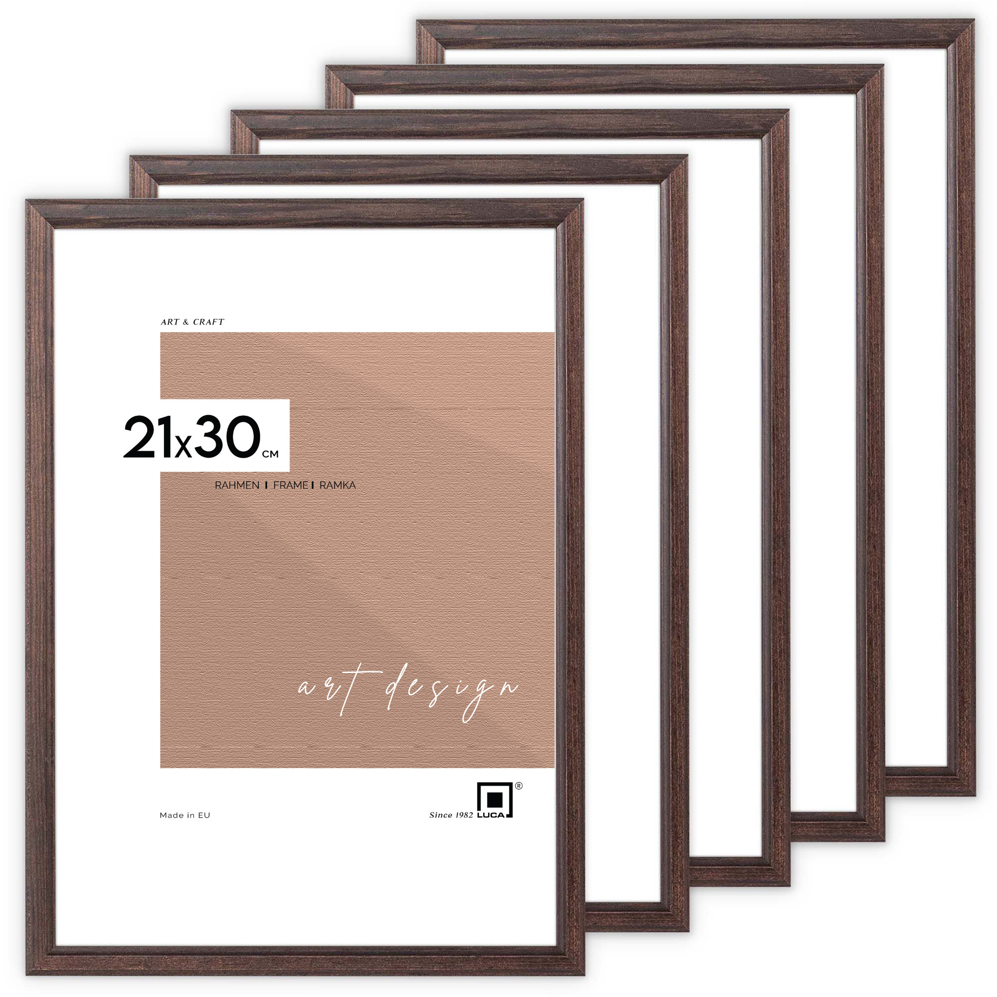 Pakiet 5 sztuk ciemnobrązowych ramek drewnianych DRWA 44 o rozmiarze 21x30 cm