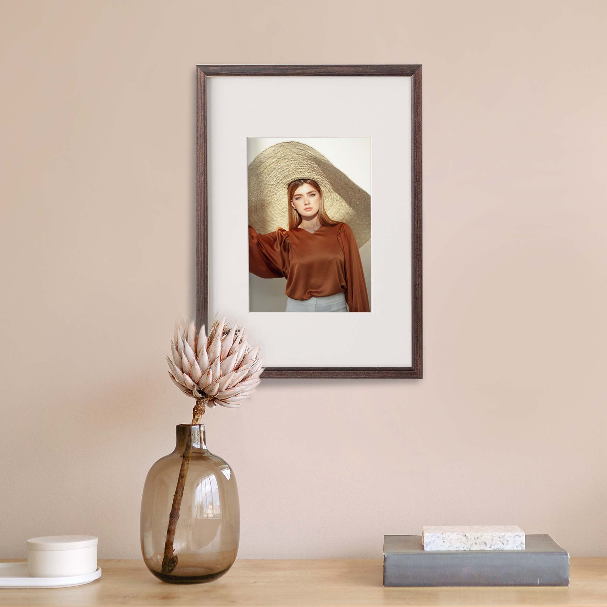 Ramki na zdjęcia z serii DRWA 44 w kolorze ciemnobrązowym to nowoczesny styl z nutką klasyki. W sposób unikalny i stylowy oprawią zdjęcia, dyplomy, jak i dowolne grafiki. Efekt delikatnego profilu w połączeniu z ciemnobrązowym kolorem pozwoli wyeksponować oprawiony obiekt w sposób zdumiewający. Modna stylistyka z delikatnie zaznaczoną ramą o szerokości 13 mm i wysokości 11 mm będzie przykuwać uwagę i zainteresuje każdego na oprawione zdjęcie lub grafikę.