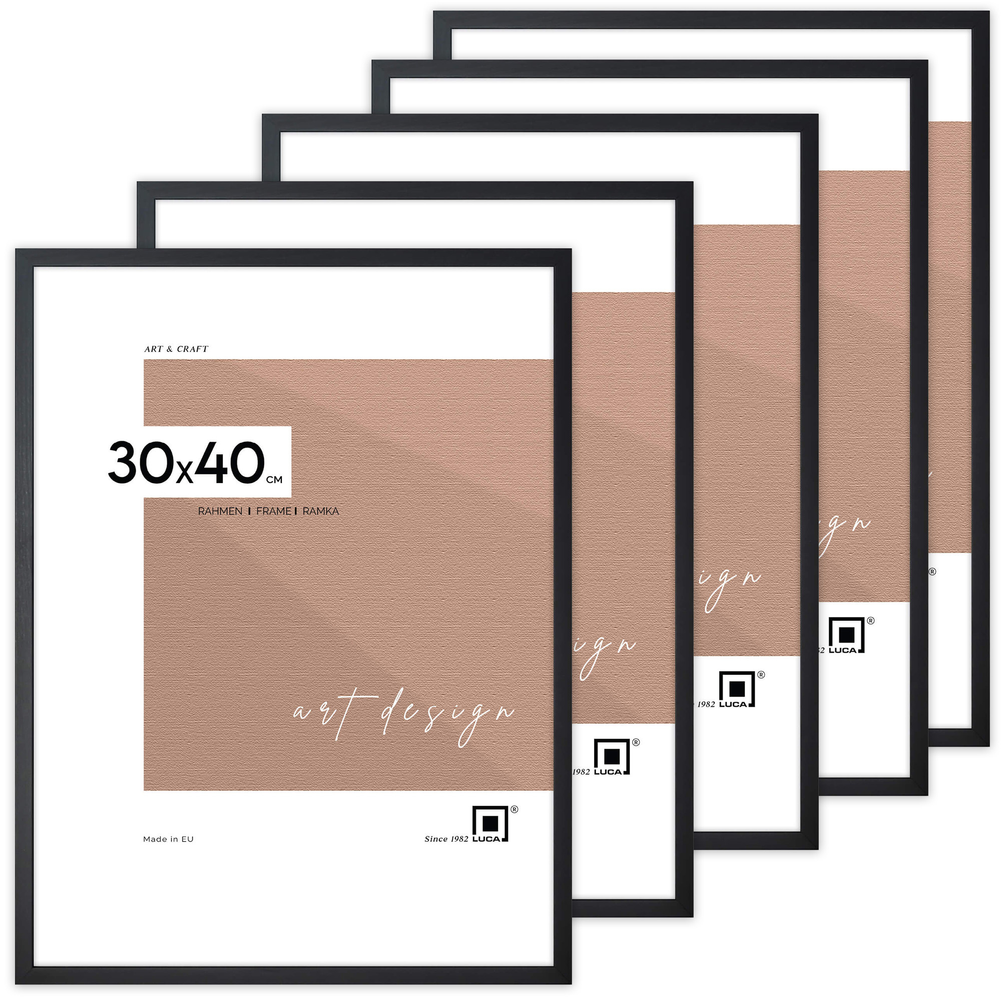 Pakiet 5 szt. czarnych ramek drewnianych PINIA 2 - rozmiar wewnętrzny 30x40 cm