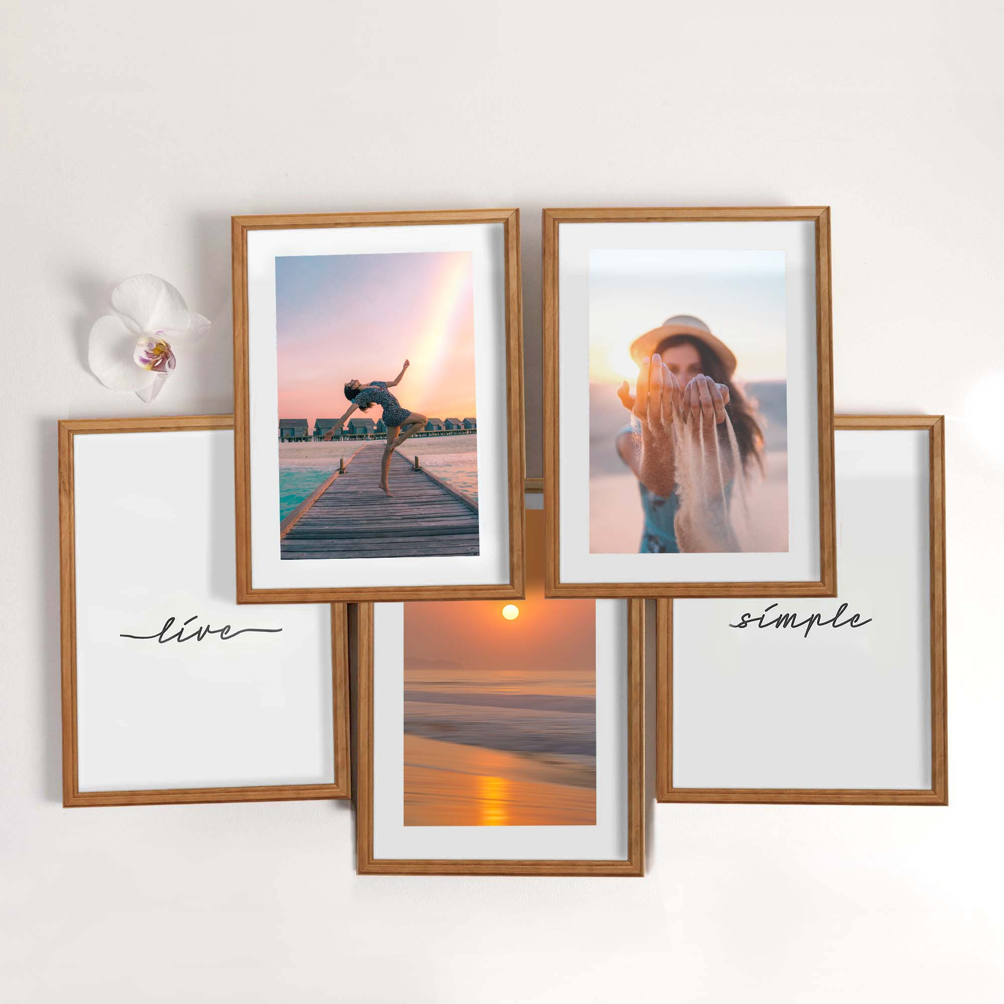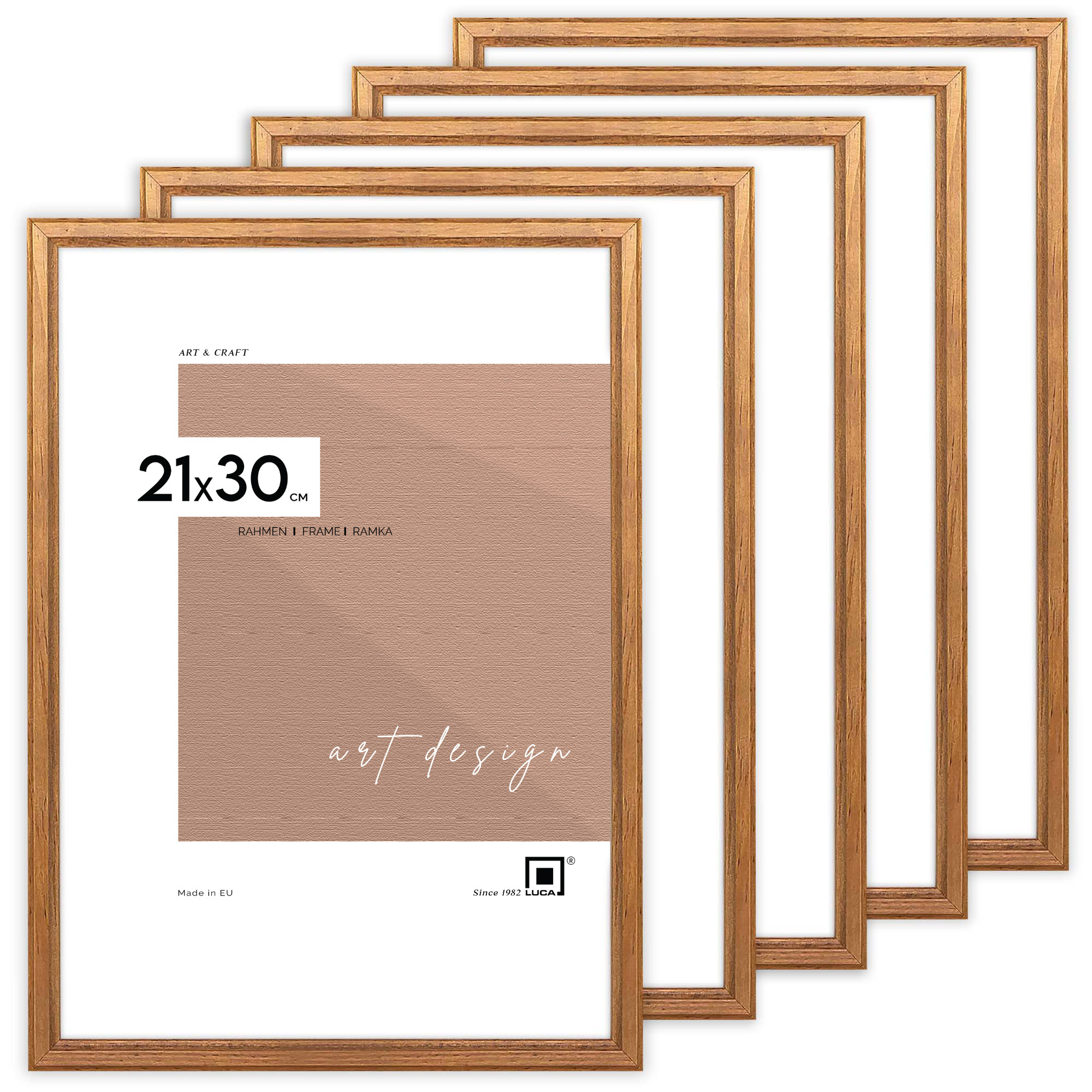 Pakiet 5 sztuk ramek drewnianych DRWA 3 w kolorze dębu o rozmiarze 21x30 cm