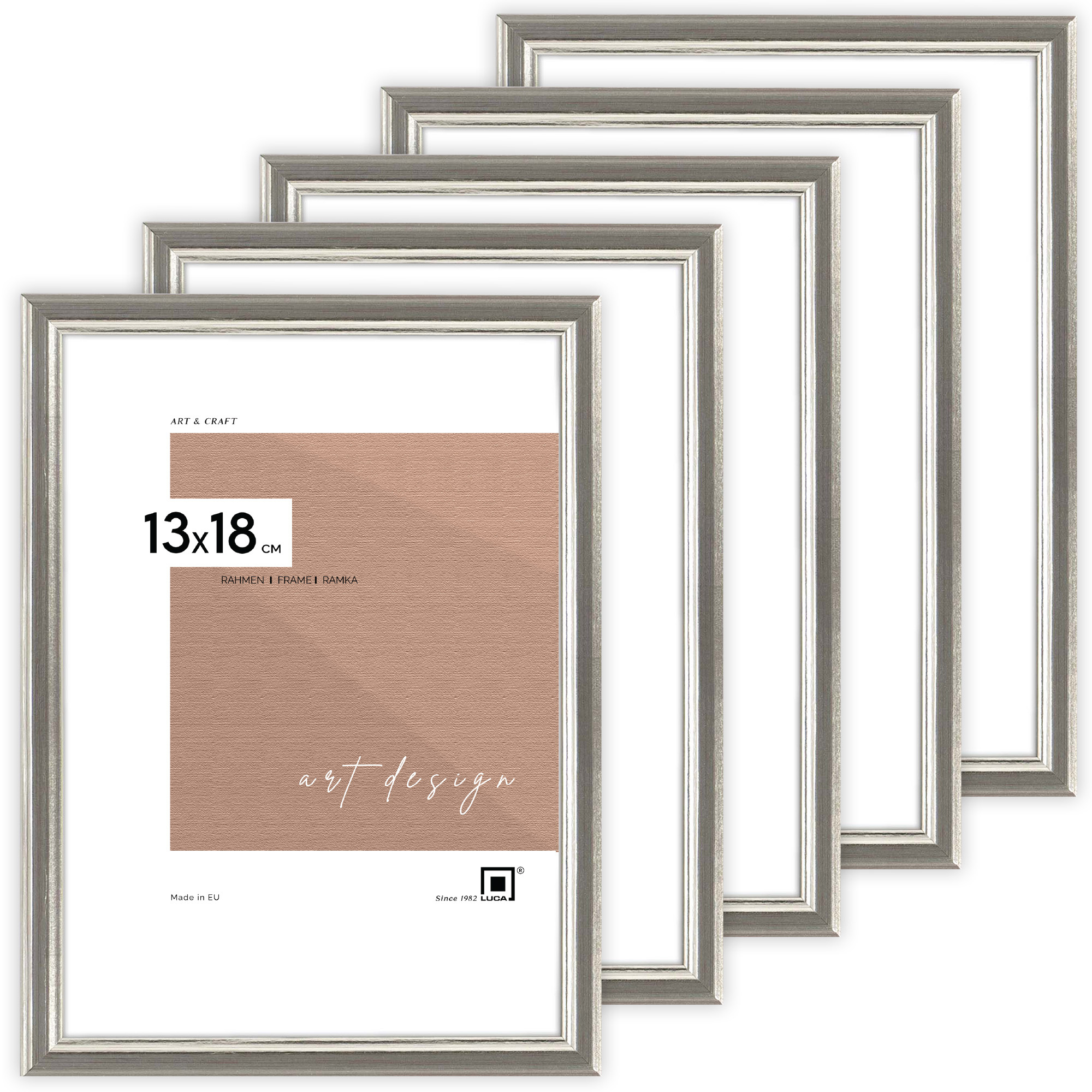 Pakiet 5 szt. srebrnych ramek drewnianych na zdjęcia DRWA FS 13x18 cm