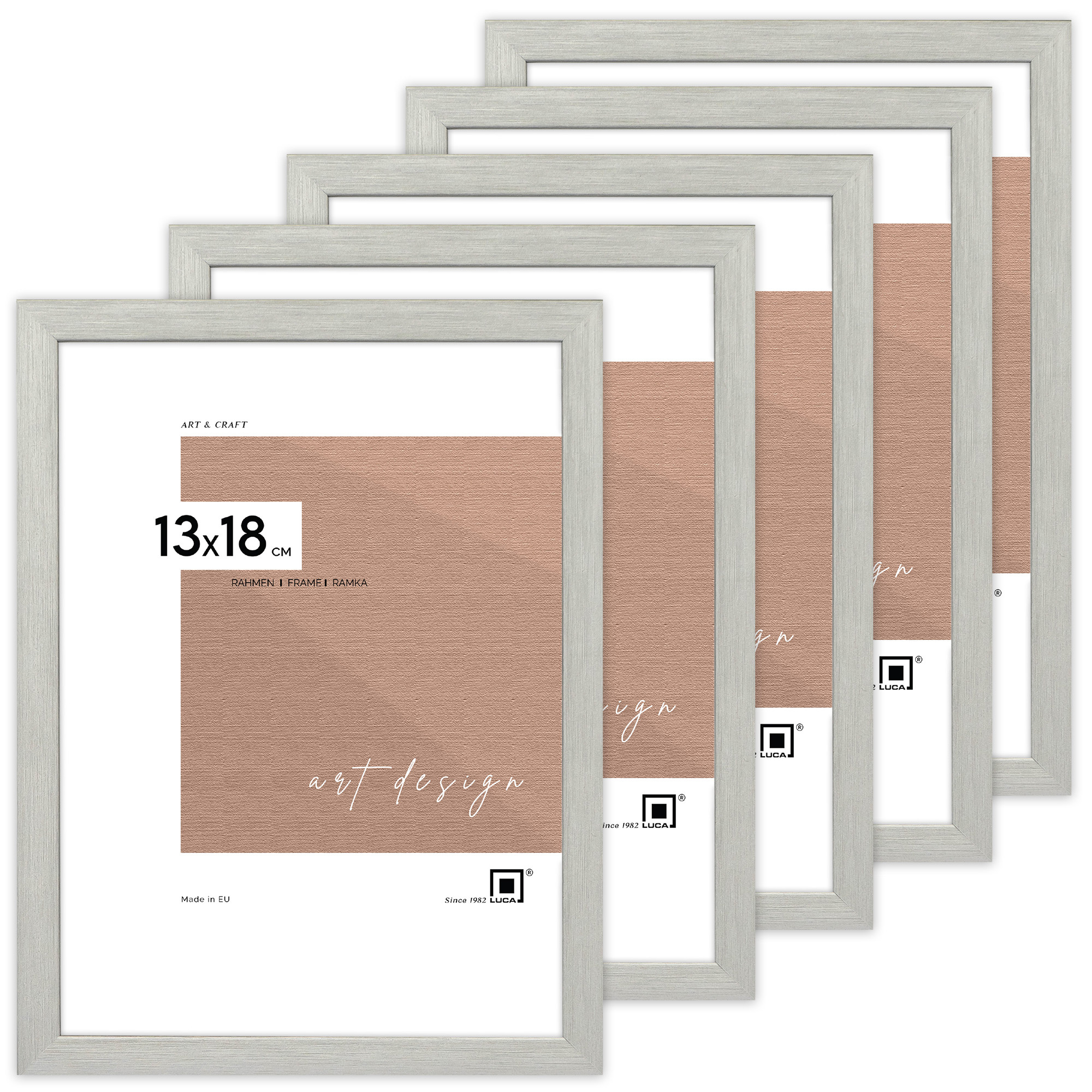 Pakiet 5 sztuk srebrnych ramek drewnianych PINIA S - 13x18 cm