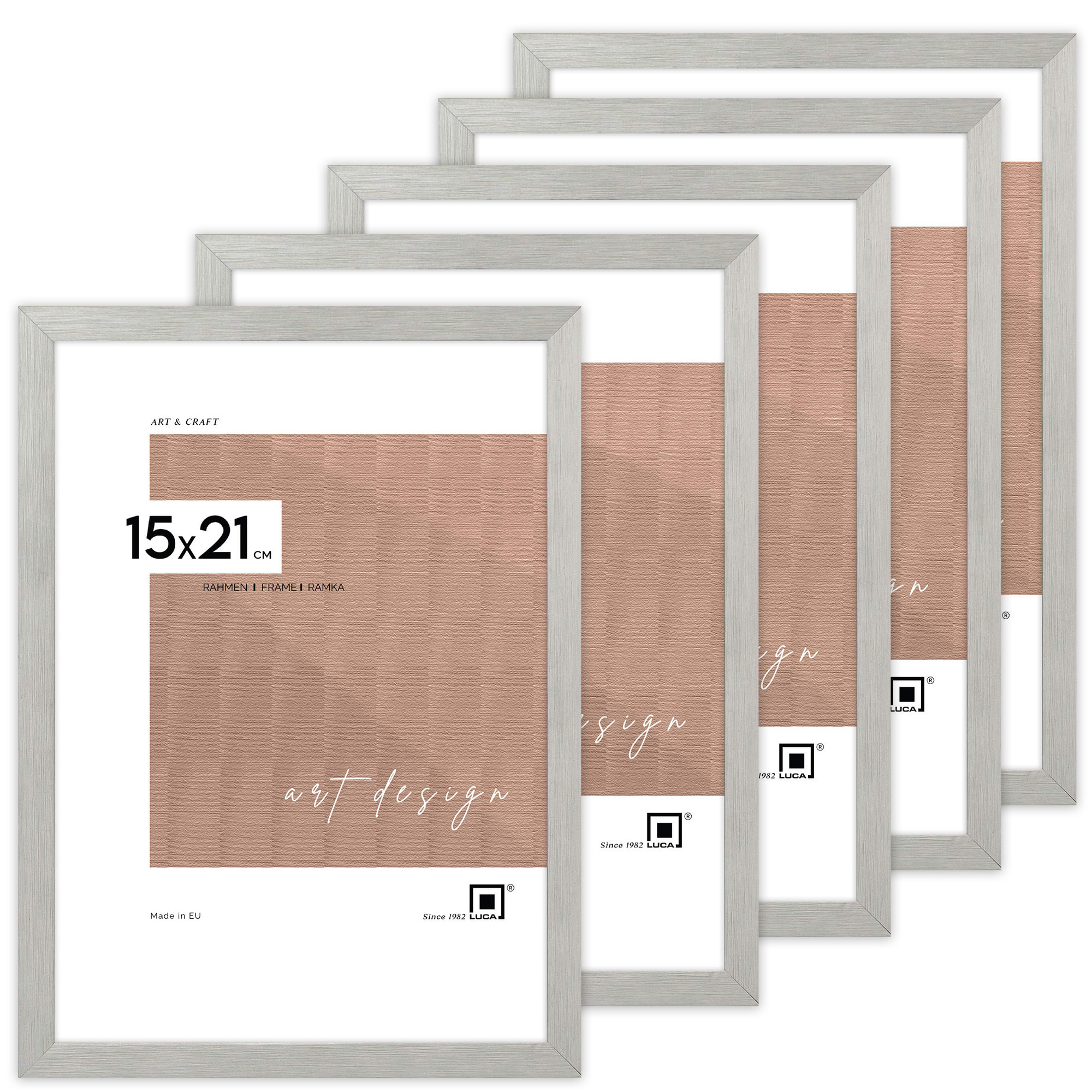 Pakiet 5 sztuk srebrnych ramek drewnianych PINIA S - 15x21 cm