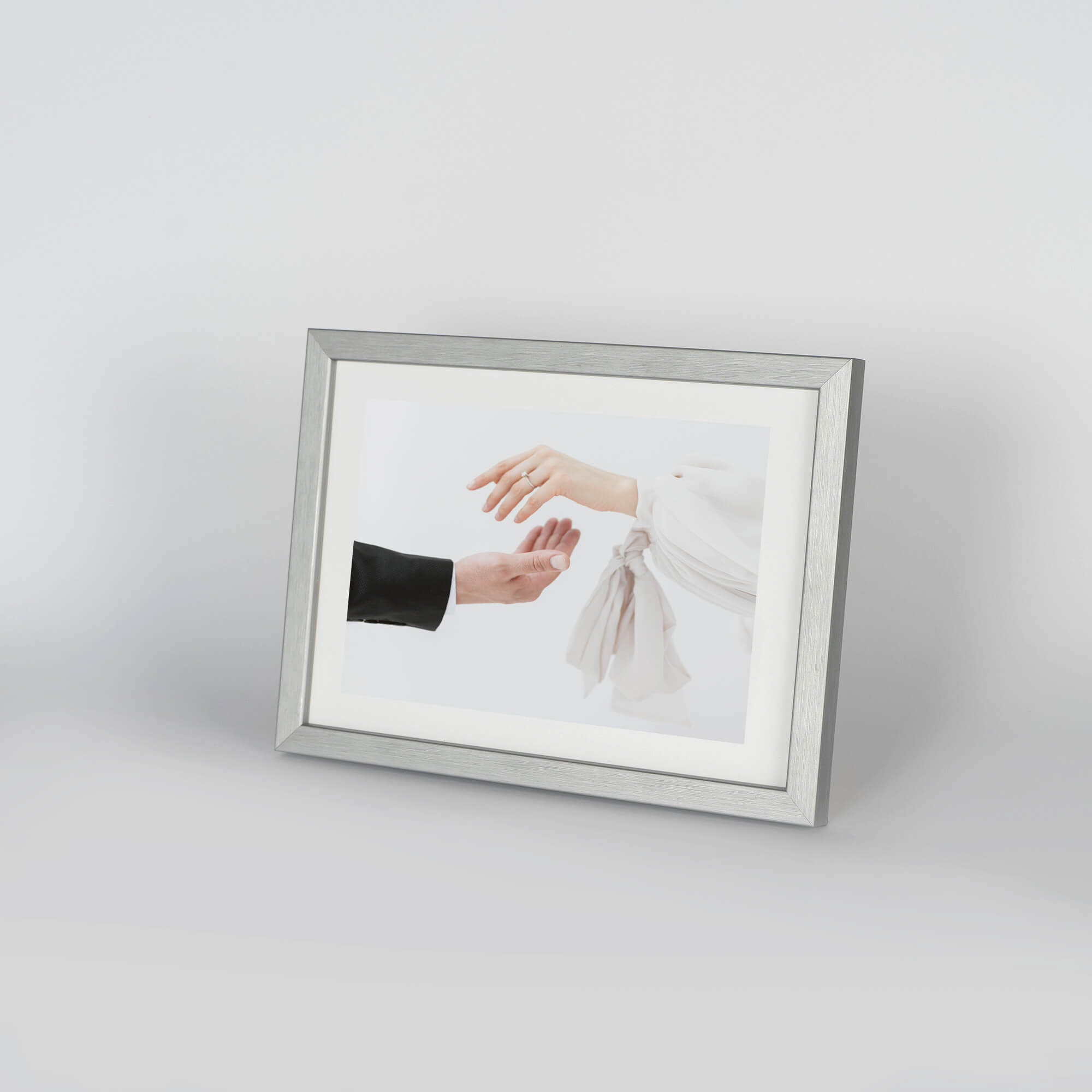 Ramka na zdjęcia PINIA S świetnie sprawdzi się w prezentowaniu wspomnień, dyplomów i grafik. Precyzyjne wykonanie, piękny odcień srebra i ramy z drewna pozwala mieć pewność o trwałości i spasowaniu. Modna stylistyka i delikatna rama o szerokości 11 mm przykuje uwagę każdej osoby.