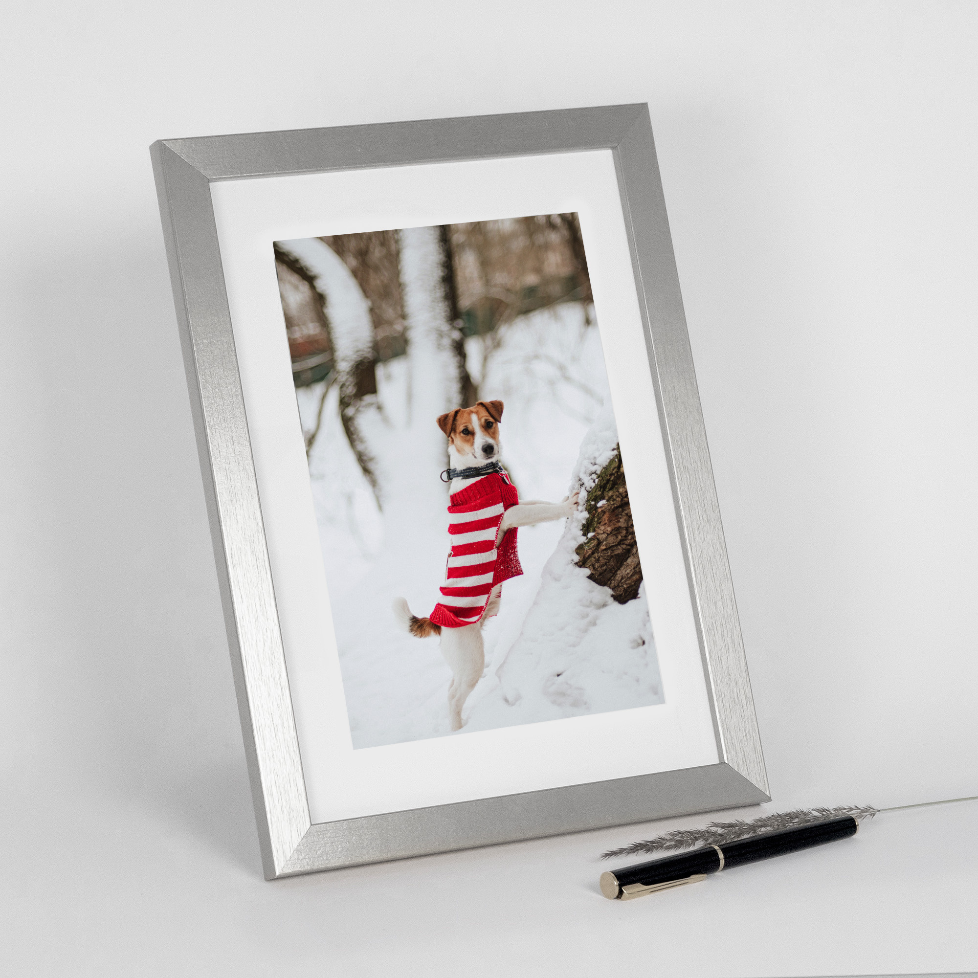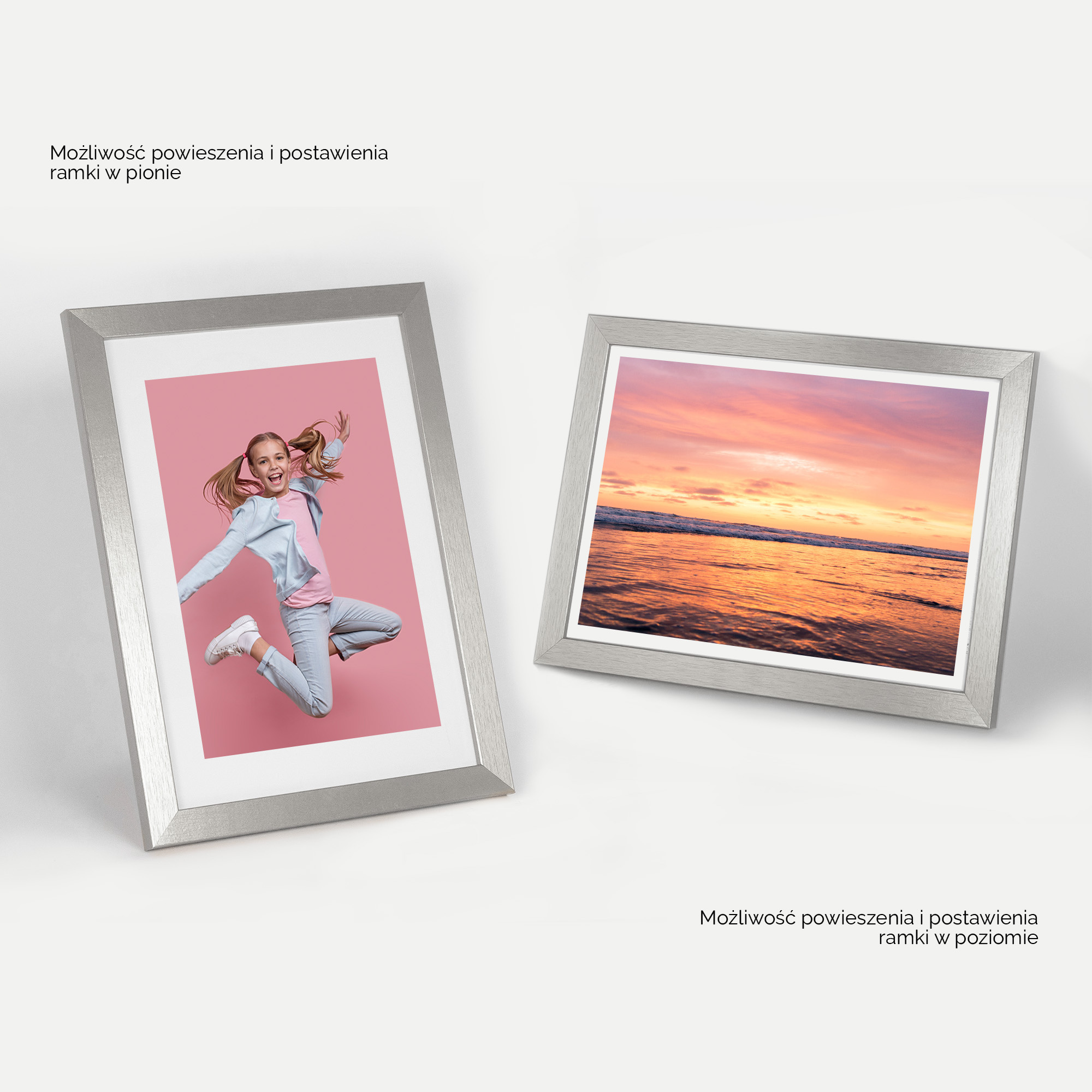 Ramka precyzyjnie wykonana z EKO MDF w kolorze srebrnym. Modna stylistyka i widoczna rama 20 mm przykuje uwagę każdej osoby. Świetnie spisze się do oprawy plakatów, grafik i zdjęć.