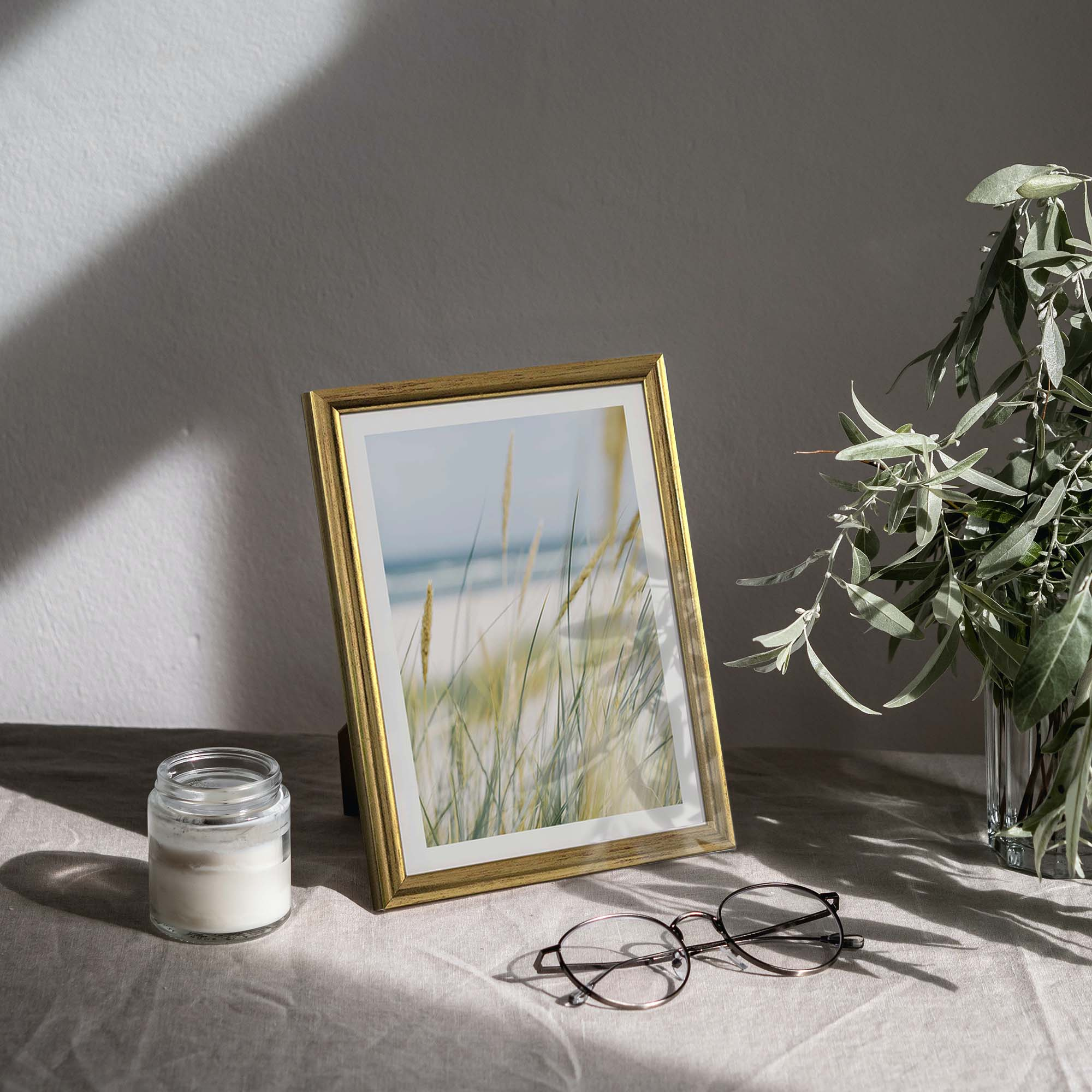 Seria ramek na zdjęcia HIT 1 Z świetnie spiszą się w prezentowaniu wspomnień, dyplomów i grafik. Precyzyjne wykonane w pięknym odcieniu złota i rama z drewna pozwala mieć pewność o idealnej ekspozycji grafik. Modna stylistyka i delikatna rama o szerokości 12 mm przykuje uwagę każdej osoby.