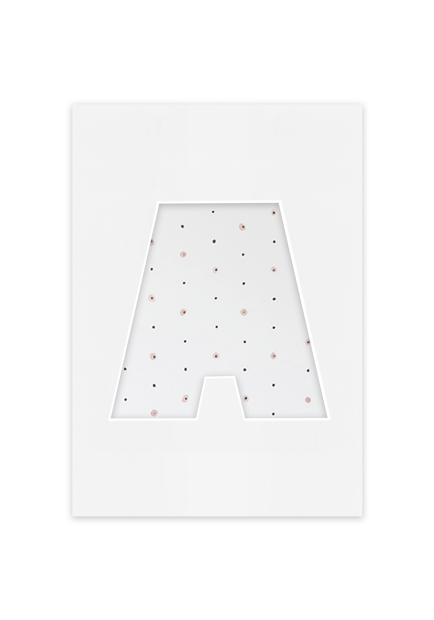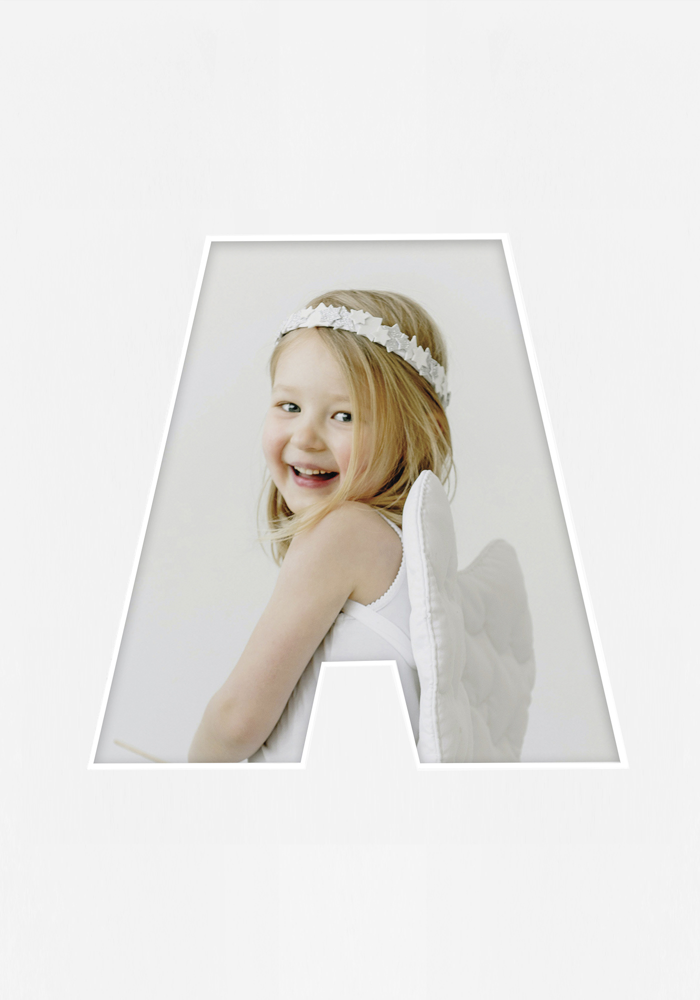 Przygotowaliśmy specjalną serię passe partout ABC - standardowe kształty zostały zamienione na spersonalizowane litery alfabetu od A do Z. Białe passe partout pasuje do ramek w rozmiarze 21x30 cm.