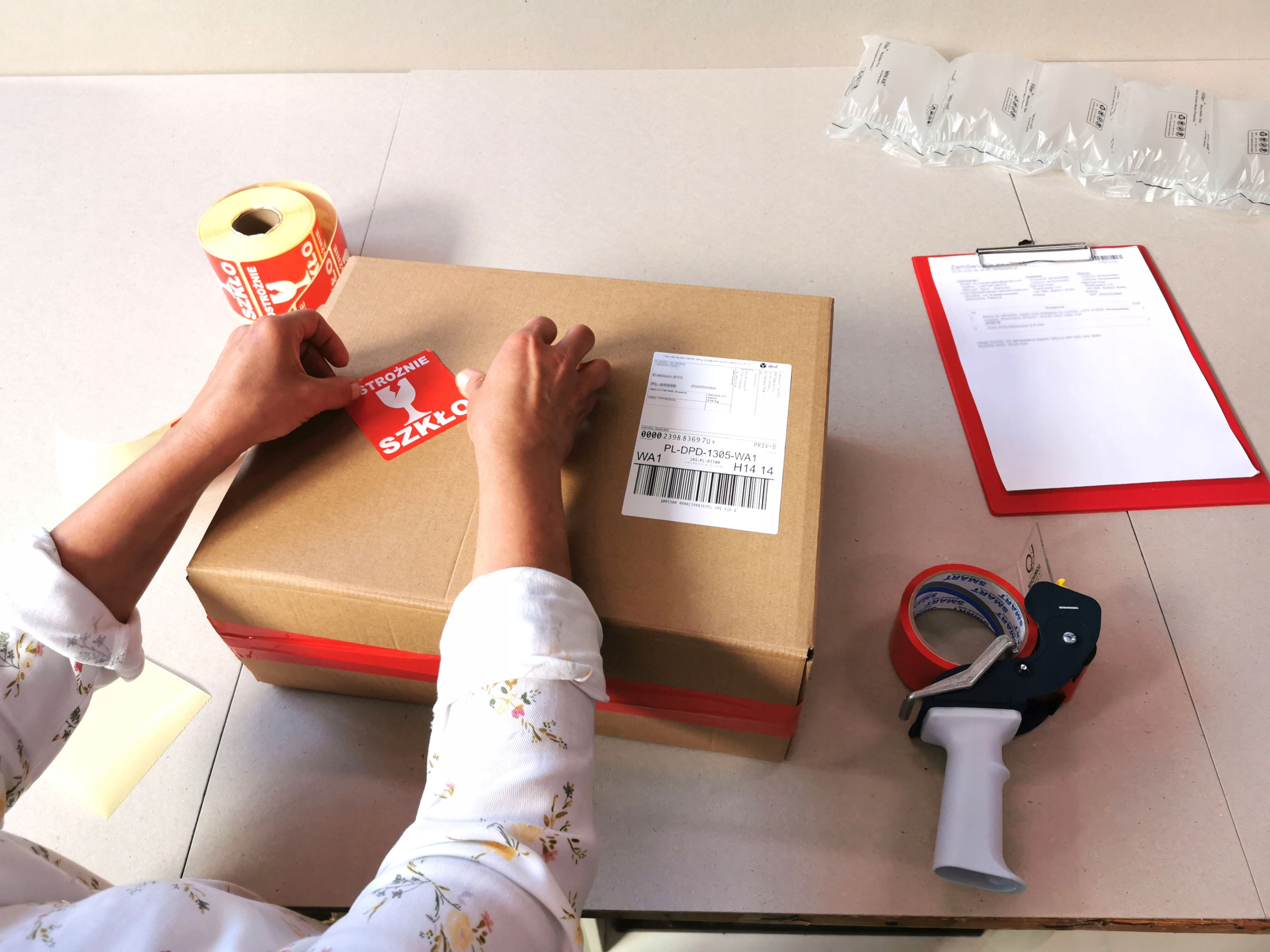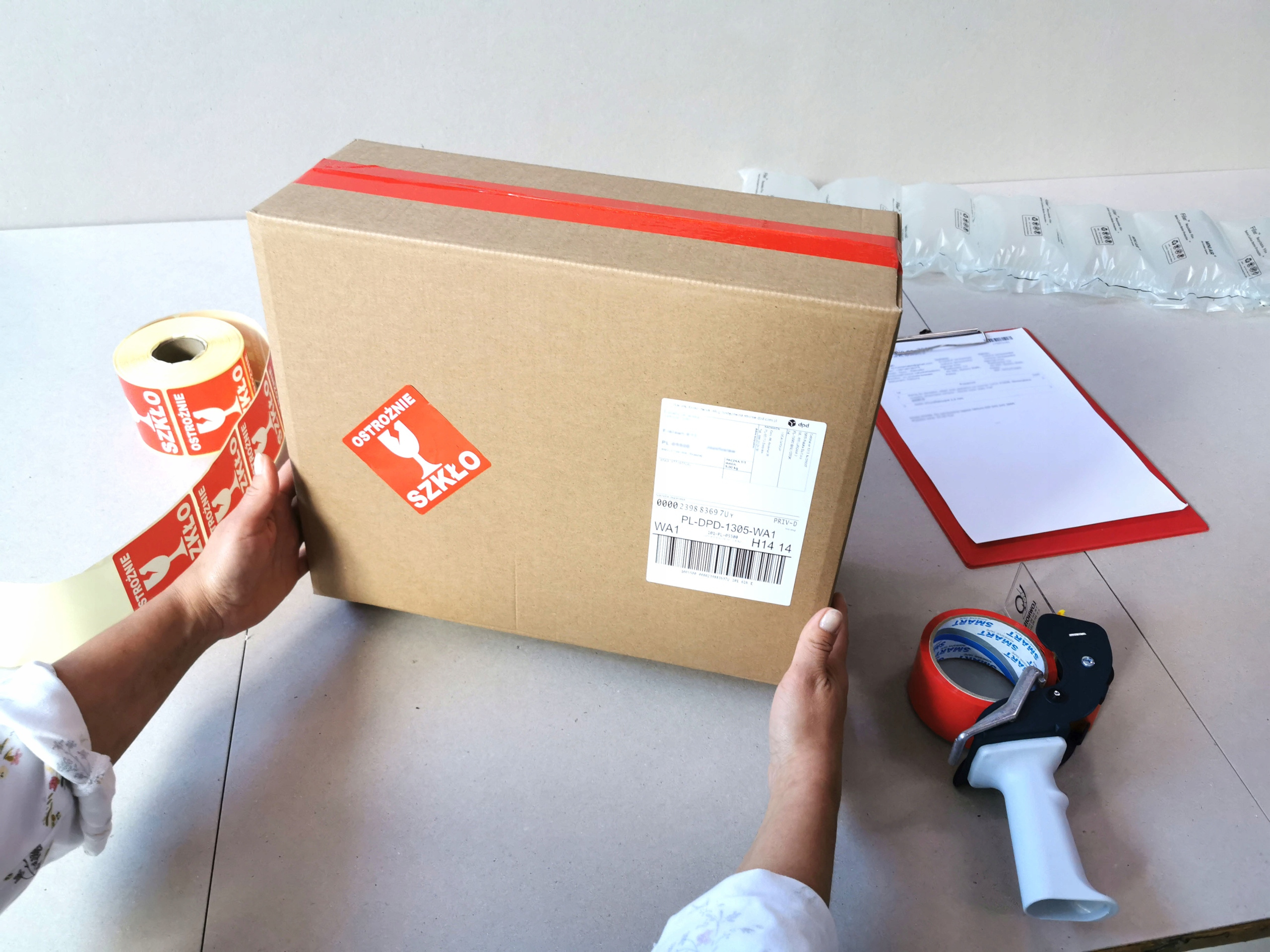 - Wszystkie paczki oznaczone są etykietami "Ostrożnie szkło".