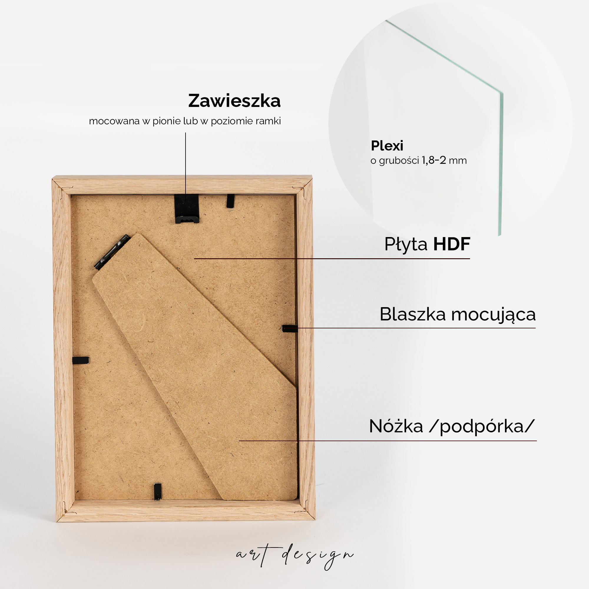 • Ramka wykonana z drewna dębowego