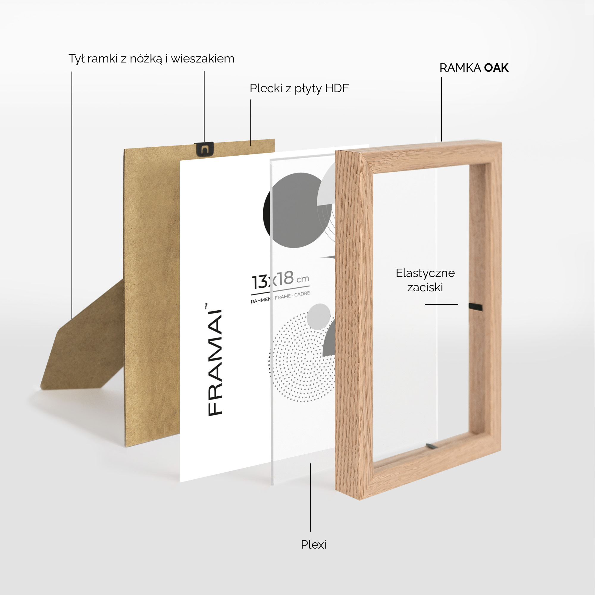 Cechy ramki OAK 13x18 cm: