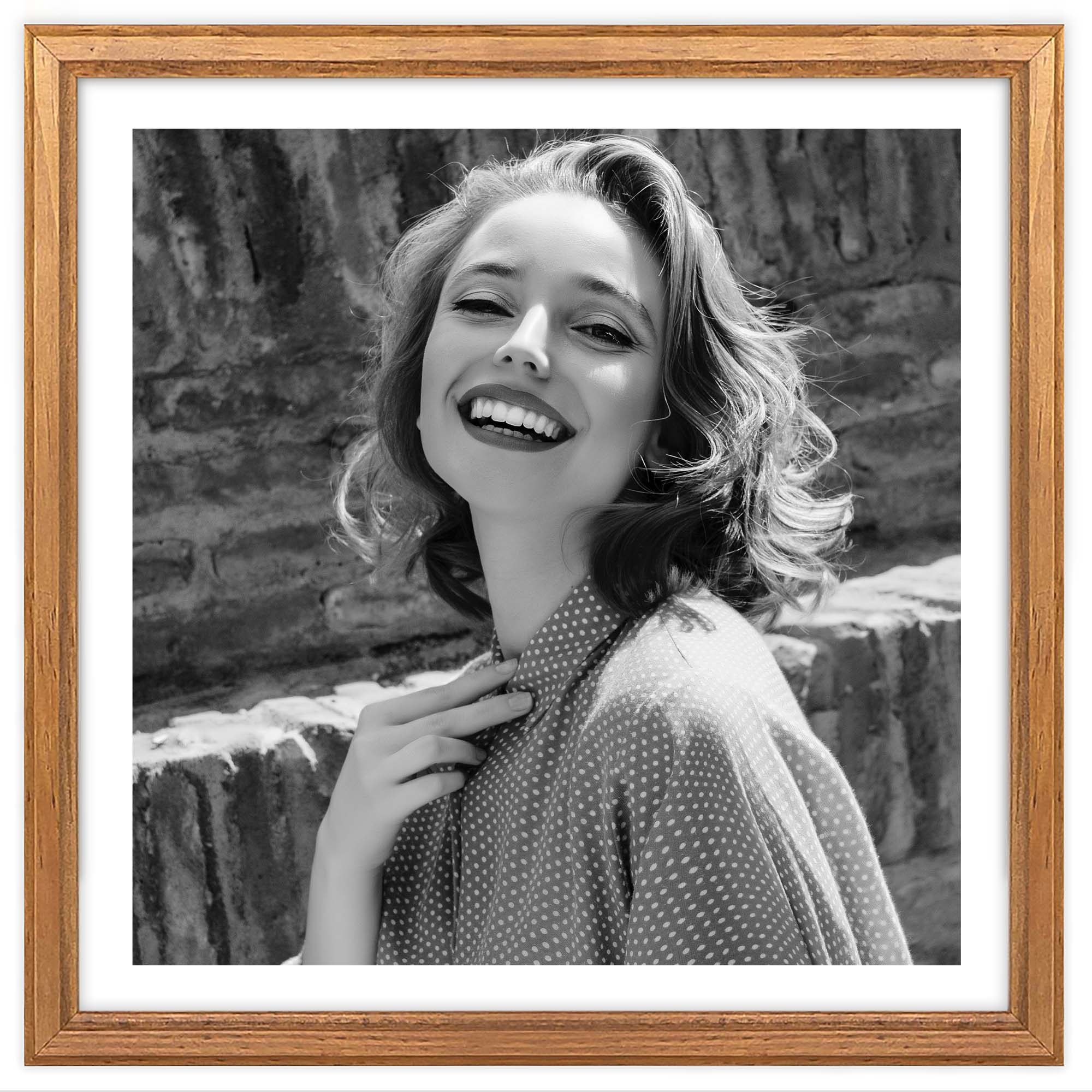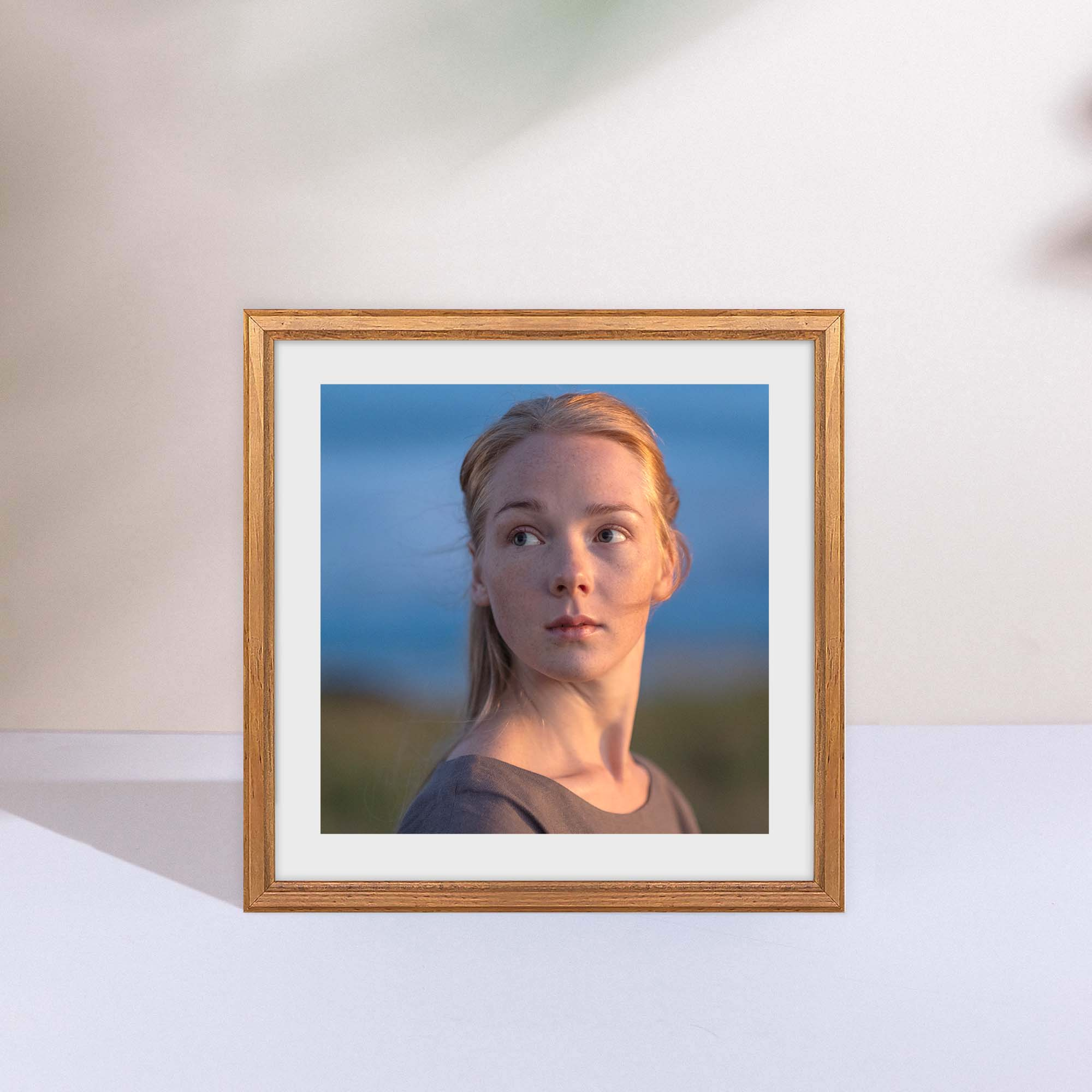 Ramka drewniana w kolorze dębowym DRWA 3 o rozmiarze 10x10 cm