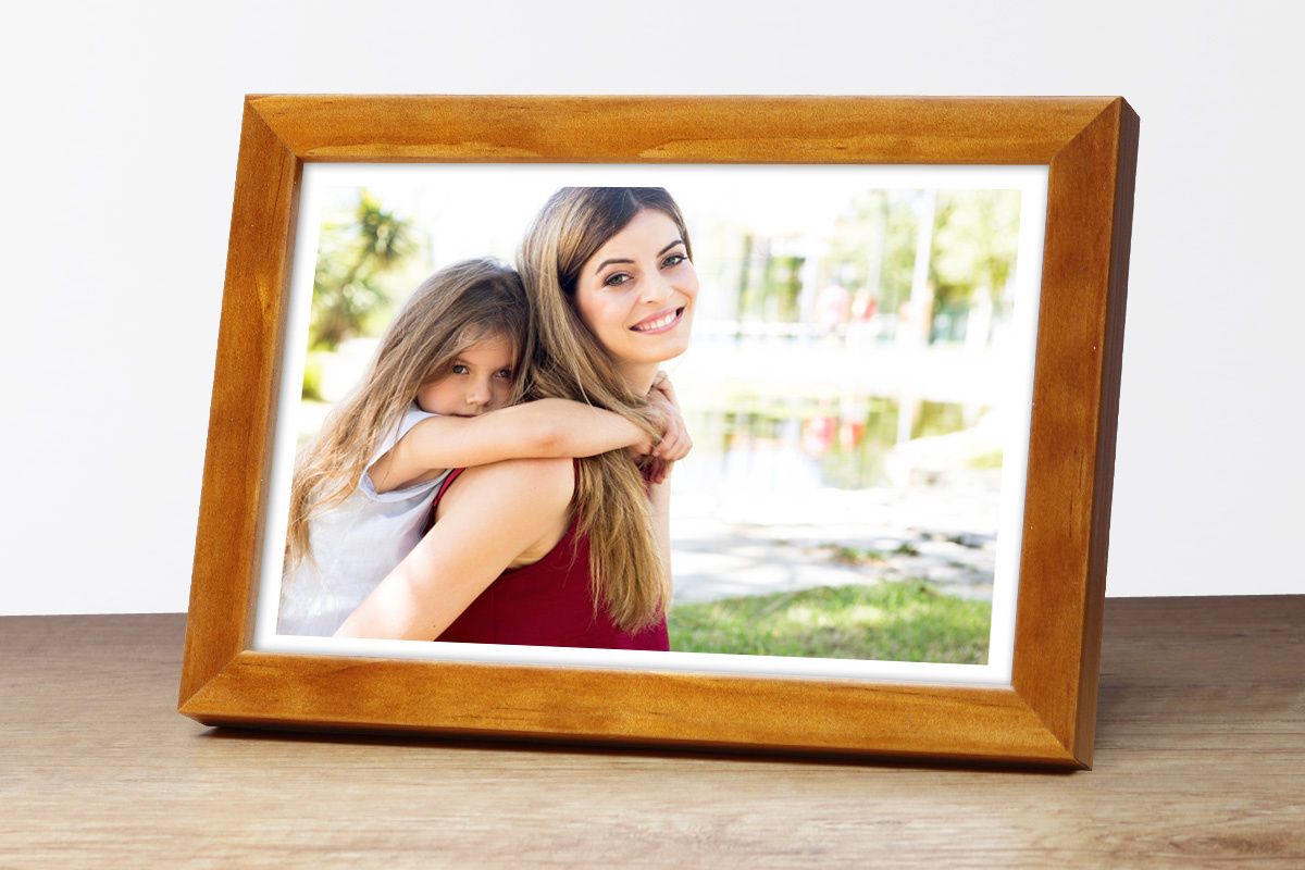 Nowoczesna fotoramka w kolorze naturalnego drewna o przekroju profilu 13x15 mm wykonana w 100% z drewna. Przeznaczona jest do oprawy fotografii, plakatów i dyplomów. W zależności od formatu wyposażona jest w szkło mineralne lub bezbarwne szkło organiczne - wysokiej jakości plexi. Plecki wykonane są z twardej płyty HDF. Ramki na zdjęcia do rozmiaru 18x24 cm dodatkowo posiadają stopkę / nóżkę która pozwala eksponować oprawiony obraz na biurku lub regale. Ramka drewniana AGA A 10N dostępna jest w rozmiarach od 10x15 cm do 40x50 cm.