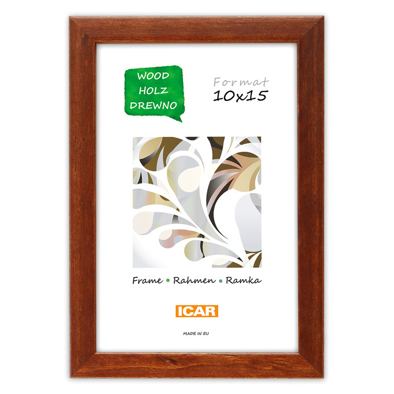 Nowoczesna fotoramka w brązowym kolorze o przekroju profilu 13x15 mm wykonana w 100% z drewna. Przeznaczona jest do oprawy fotografii, plakatów i dyplomów. W zależności od formatu wyposażona jest w szkło mineralne lub bezbarwne szkło organiczne - wysokiej jakości plexi. Plecki wykonane są z twardej płyty HDF. Ramki na zdjęcia do rozmiaru 18x24 cm dodatkowo posiadają stopkę / nóżkę która pozwala eksponować oprawiony obraz na biurku lub regale. Ramka drewniana AGA A 3 dostępna jest w rozmiarach od 10x15 cm do 40x50 cm.