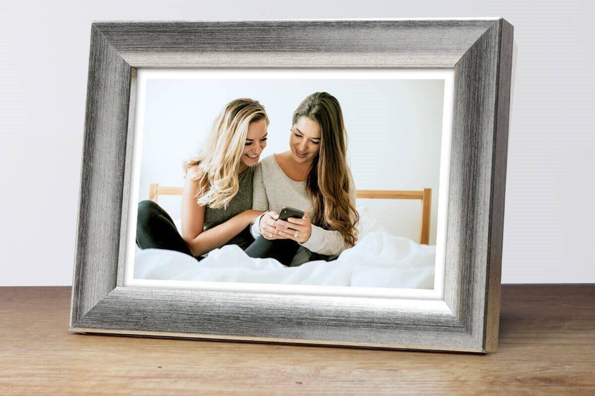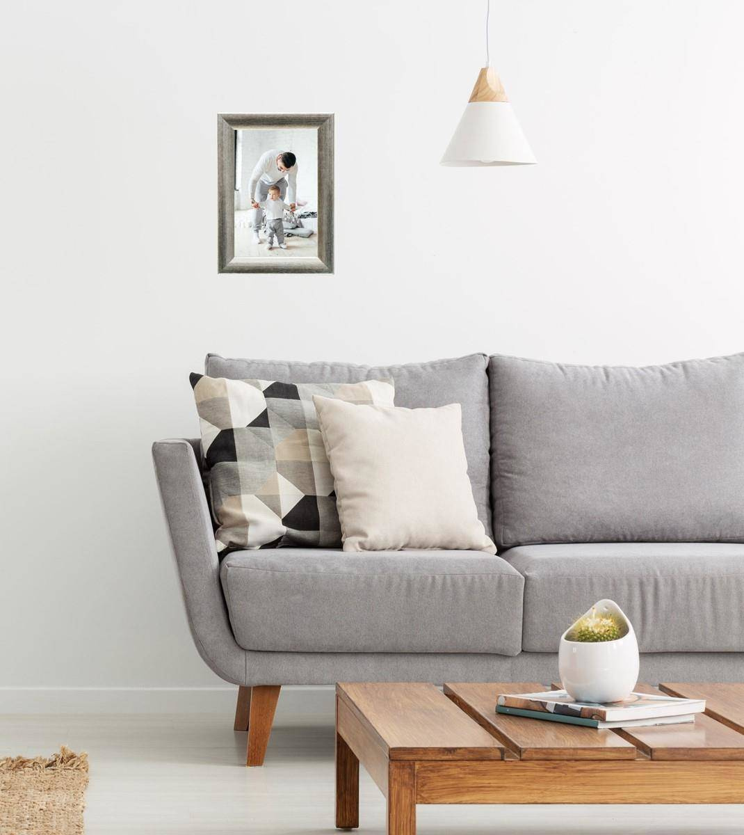 Nowoczesna fotoramka w srebrnym antycznym kolorze o przekroju profilu 20x16 mm wykonana w 100% z drewna. Przeznaczona jest do oprawy fotografii, plakatów i dyplomów. W zależności od formatu wyposażona jest w szkło mineralne lub bezbarwne szkło organiczne - wysokiej jakości plexi. Plecki wykonane są z twardej płyty HDF. Ramki na zdjęcia do rozmiaru 18x24 cm dodatkowo posiadają stopkę / nóżkę która pozwala eksponować oprawiony obraz na biurku lub regale. Ramka drewniana DRI G S dostępna jest w rozmiarach od 10x15 cm do 50x70 cm.
