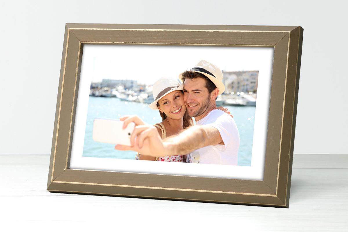 Nowoczesna fotoramka w kolorze kawy z przetarciami o przekroju profilu 15x15 mm wykonana w 100% z drewna. Przeznaczona jest do oprawy fotografii, plakatów i dyplomów. W zależności od formatu wyposażona jest w szkło mineralne lub bezbarwne szkło organiczne - wysokiej jakości plexi. Plecki wykonane są z twardej płyty HDF. Ramki na zdjęcia do rozmiaru 18x24 cm dodatkowo posiadają stopkę / nóżkę która pozwala eksponować oprawiony obraz na biurku lub regale. Ramka drewniana DRI M 23 dostępna jest w rozmiarach od 10x15 cm do 50x70 cm.