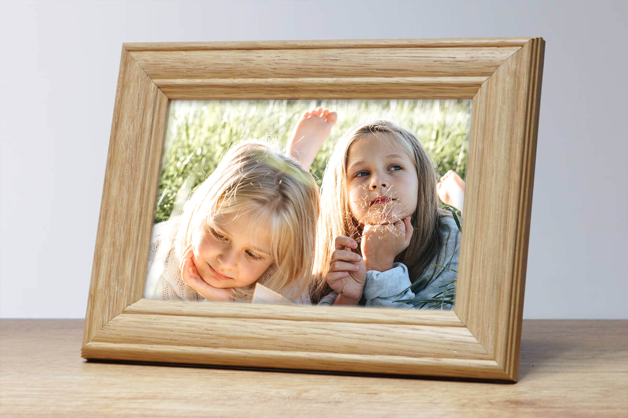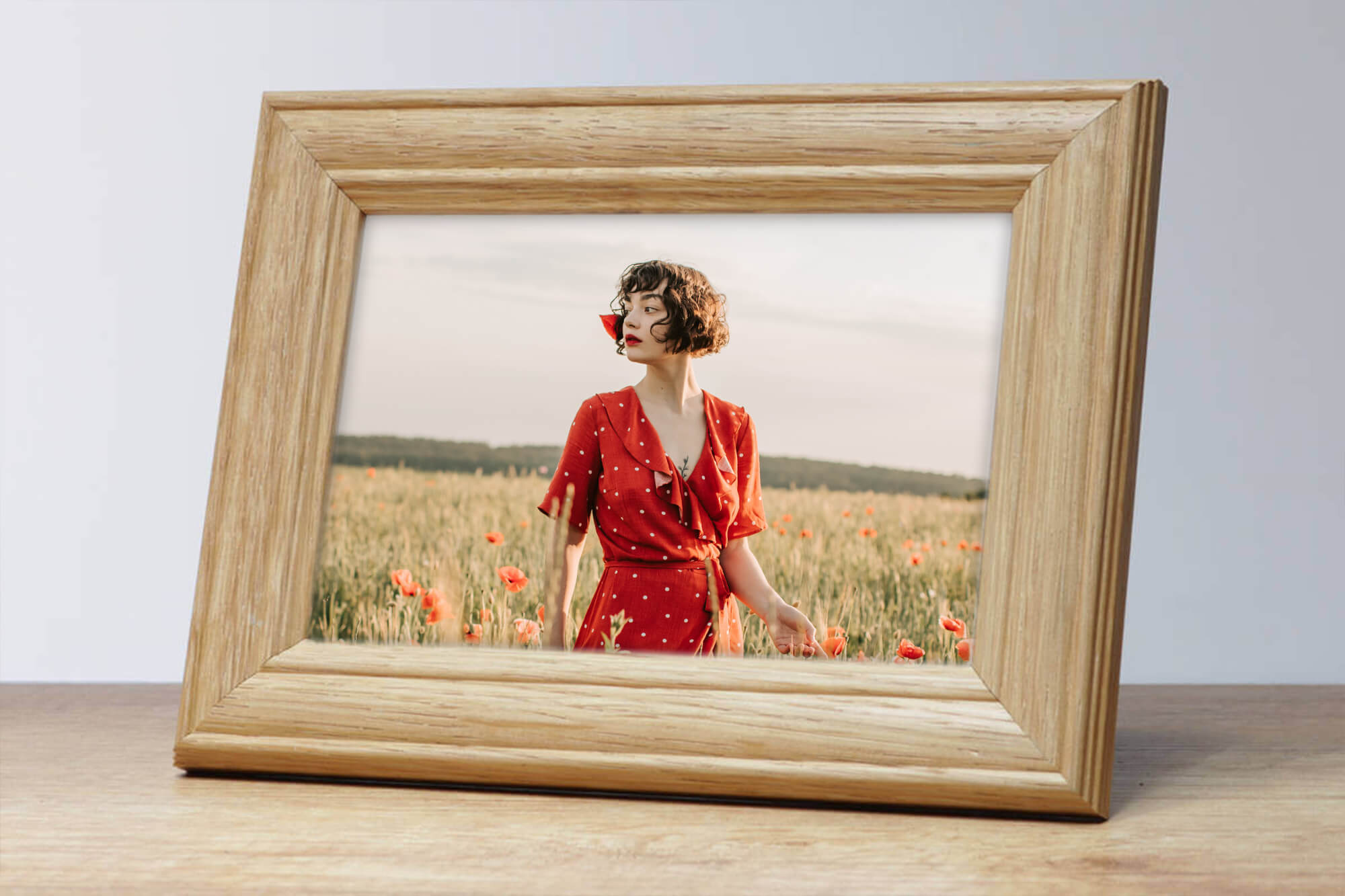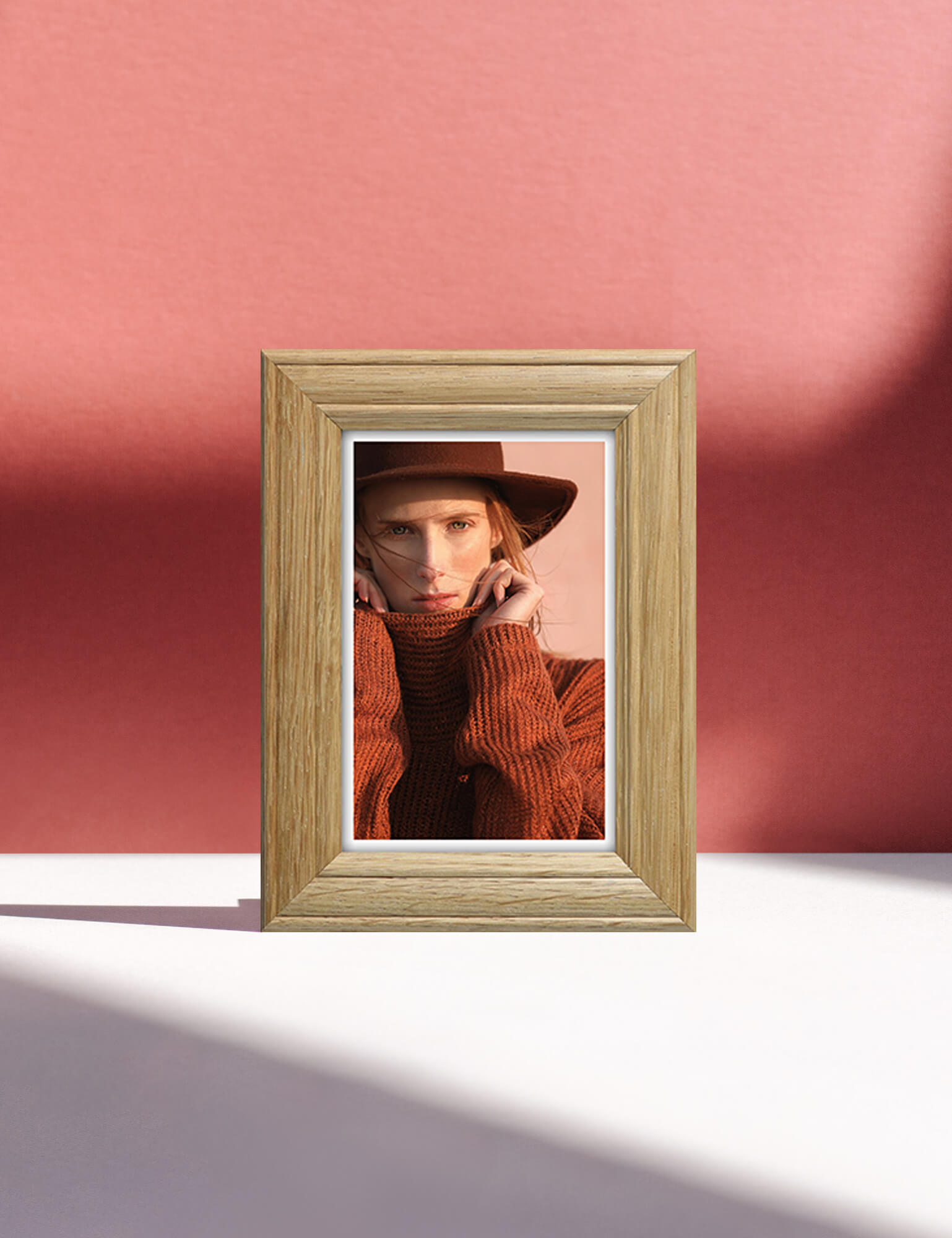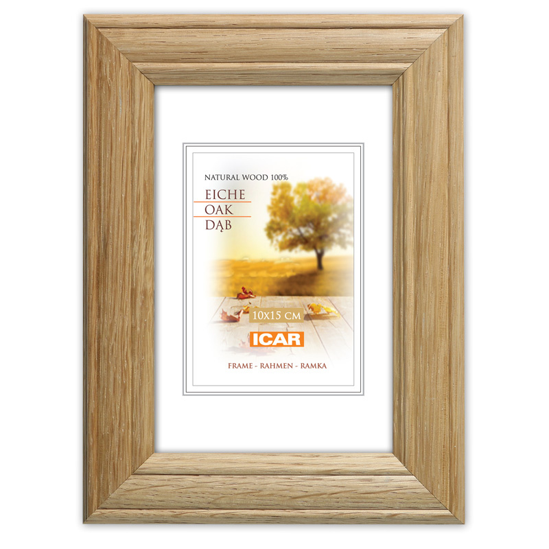 Klasyczna fotoramka w kolorze jasnego drewna z widoczną strukturą drewna o przekroju profilu 27x15 mm wykonana w 100% z drewna. Przeznaczona jest do oprawy fotografii, plakatów i dyplomów. W zależności od formatu wyposażona jest w szkło mineralne lub bezbarwne szkło organiczne - wysokiej jakości plexi. Plecki wykonane są z twardej płyty HDF. Ramki na zdjęcia do rozmiaru 18x24 cm dodatkowo posiadają stopkę / nóżkę która pozwala eksponować oprawiony obraz na biurku lub regale. Ramka drewniana DRL F 0 dostępna jest w rozmiarach od 10x15 cm do 50x70 cm.