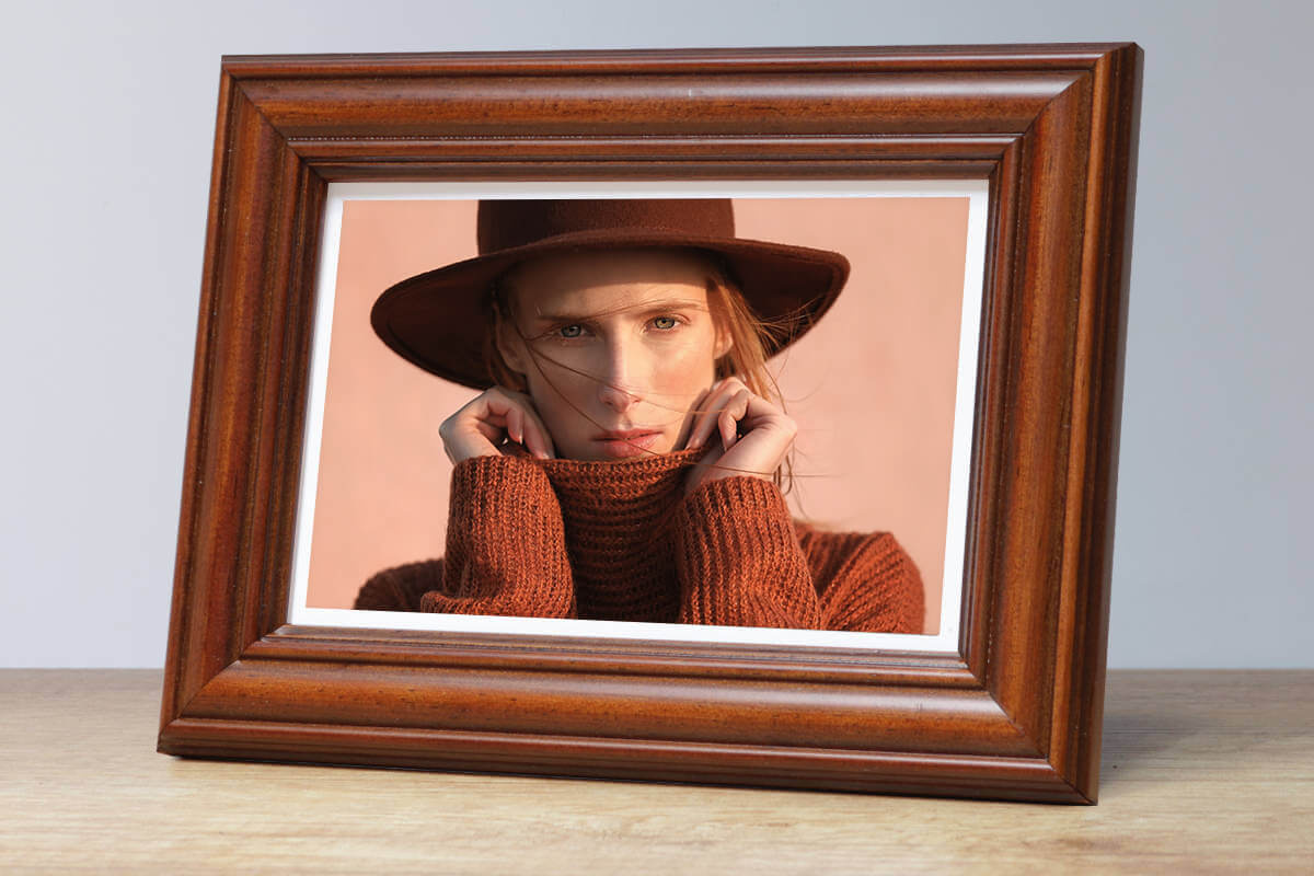 Klasyczna fotoramka w brązowym kolorze z widoczną strukturą drewna o przekroju profilu 27x15 mm wykonana w 100% z drewna. Przeznaczona jest do oprawy fotografii, plakatów i dyplomów. W zależności od formatu wyposażona jest w szkło mineralne lub bezbarwne szkło organiczne - wysokiej jakości plexi. Plecki wykonane są z twardej płyty HDF. Ramki na zdjęcia do rozmiaru 18x24 cm dodatkowo posiadają stopkę / nóżkę która pozwala eksponować oprawiony obraz na biurku lub regale. Ramka drewniana DRL F 03 dostępna jest w rozmiarach od 10x15 cm do 50x70 cm.