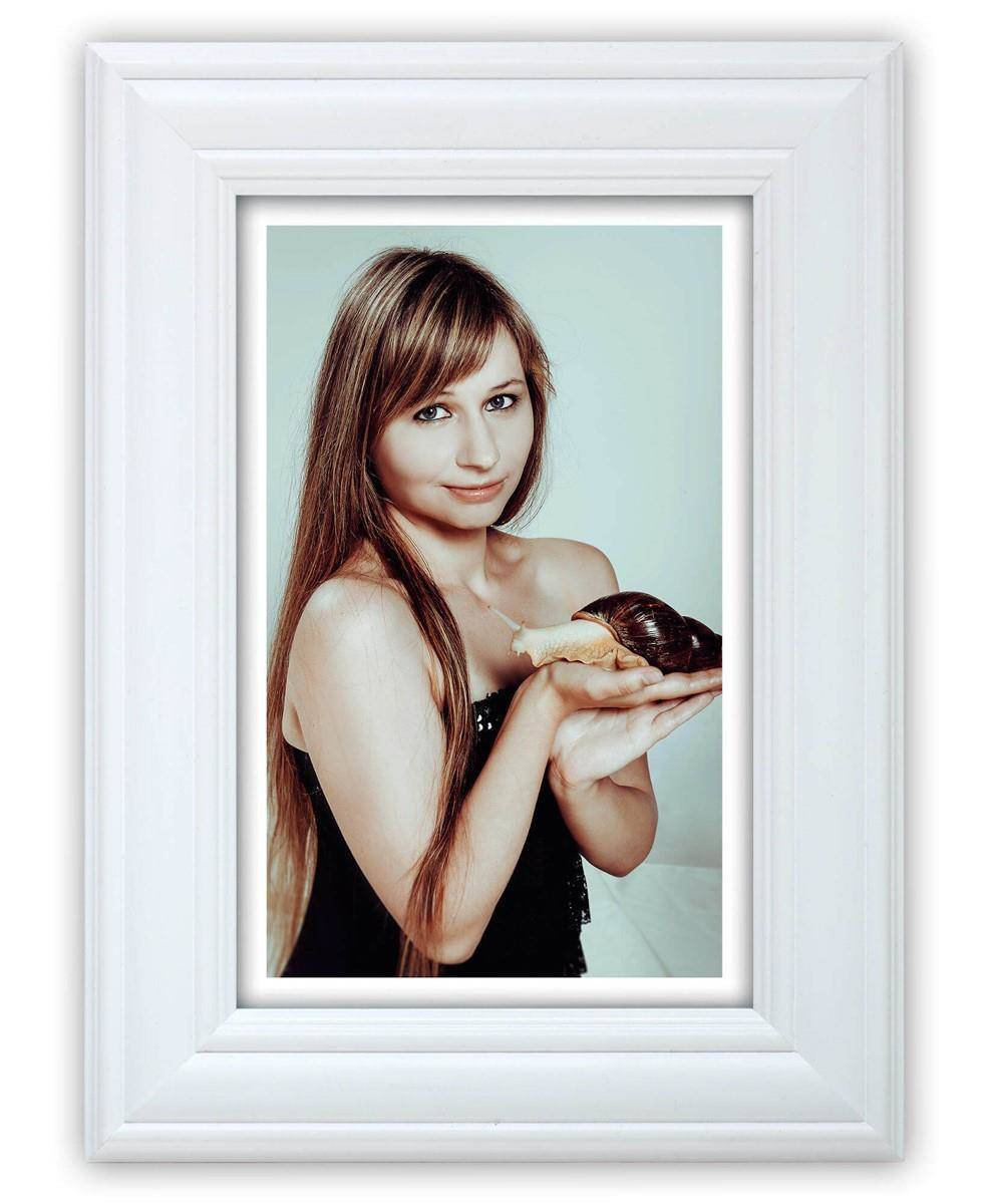 Klasyczna fotoramka w białym kolorze o przekroju profilu 27x15 mm wykonana w 100% z drewna. Przeznaczona jest do oprawy fotografii, plakatów i dyplomów. W zależności od formatu wyposażona jest w szkło mineralne lub bezbarwne szkło organiczne - wysokiej jakości plexi. Plecki wykonane są z twardej płyty HDF. Ramki na zdjęcia do rozmiaru 18x24 cm dodatkowo posiadają stopkę / nóżkę która pozwala eksponować oprawiony obraz na biurku lub regale. Ramka drewniana DRL F 1 dostępna jest w rozmiarach od 10x15 cm do 50x70 cm.