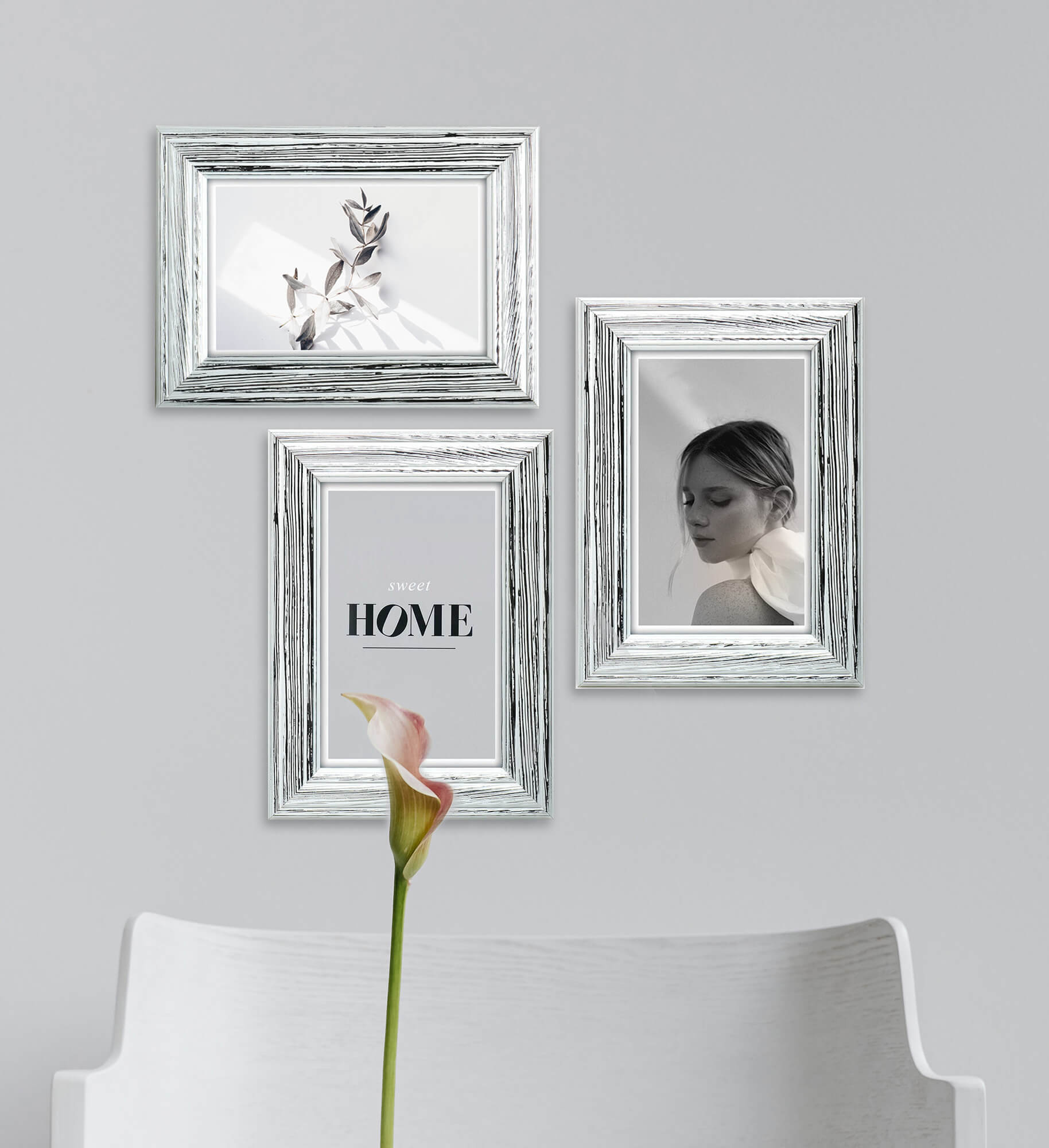 Ramka drewniana na zdjęcia - DRL F 1S w kolorze białym z przetarciami
