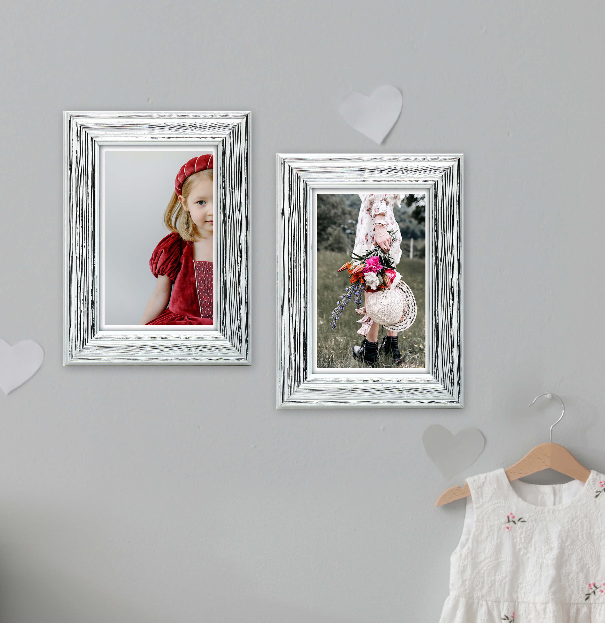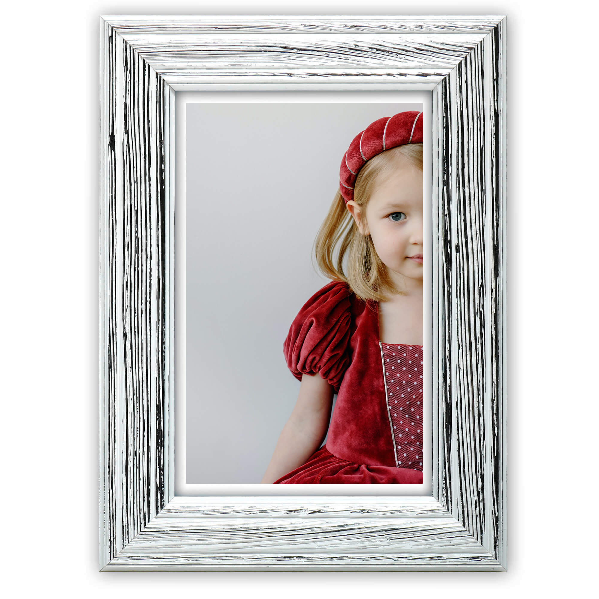 Ramka drewniana na zdjęcia - DRL F 1S w kolorze białym z przetarciami
