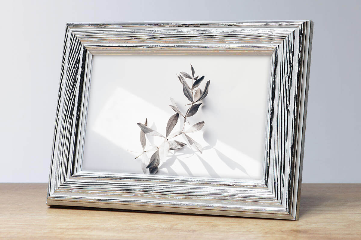 Ramka drewniana na zdjęcia - DRL F 1S w kolorze białym z przetarciami