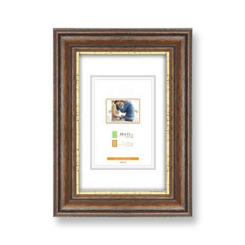 Ramka drewniana na zdjęcia - DRL F 3 w kolorze brązowym ze złotym paskiem