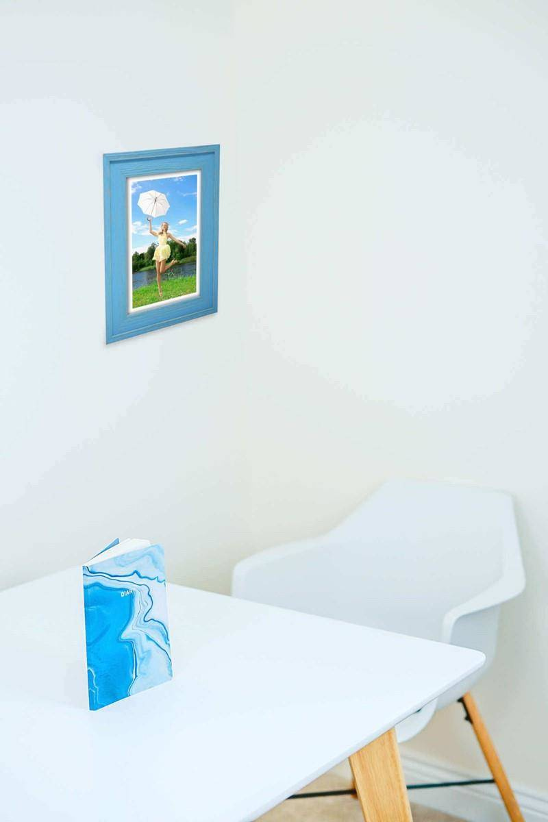 Nowoczesna fotoramka w błękitnym kolorze z przetarciami o przekroju profilu 25x16 mm wykonana w 100% z drewna. Przeznaczona jest do oprawy fotografii, plakatów i dyplomów. W zależności od formatu wyposażona jest w szkło mineralne lub bezbarwne szkło organiczne - wysokiej jakości plexi. Plecki wykonane są z twardej płyty HDF. Ramki na zdjęcia do rozmiaru 18x24 cm dodatkowo posiadają stopkę / nóżkę która pozwala eksponować oprawiony obraz na biurku lub regale. Ramka drewniana DRL M 11S dostępna jest w rozmiarach od 10x15 cm do 50x70 cm.
