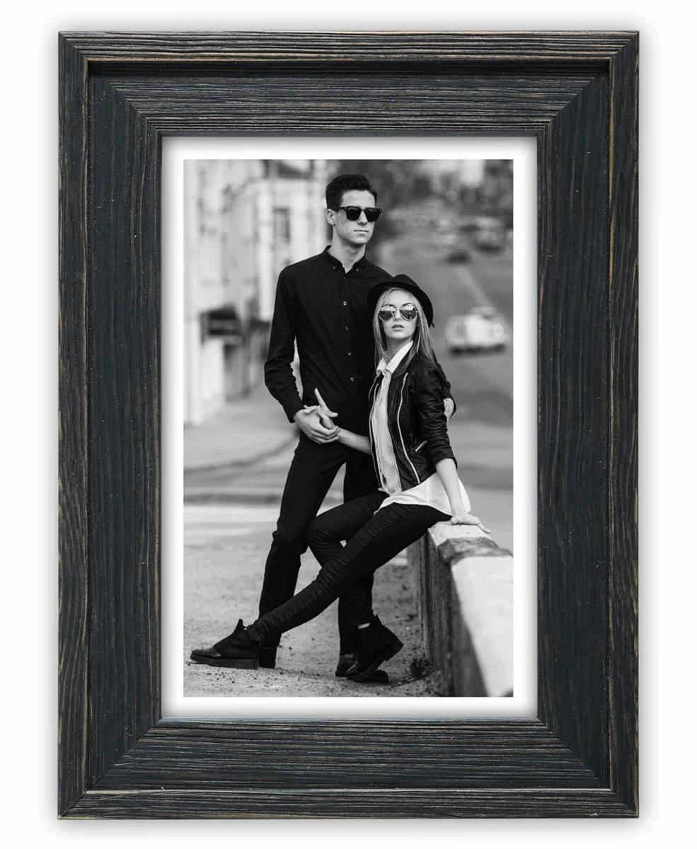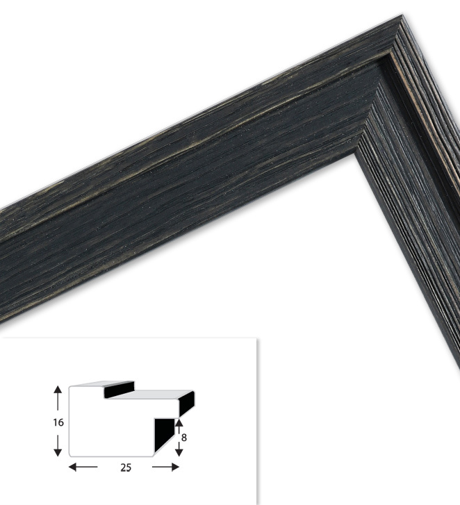 Nowoczesna fotoramka w czarnym kolorze z przetarciami o przekroju profilu 25x16 mm wykonana w 100% z drewna. Przeznaczona jest do oprawy fotografii, plakatów i dyplomów. W zależności od formatu wyposażona jest w szkło mineralne lub bezbarwne szkło organiczne - wysokiej jakości plexi. Plecki wykonane są z twardej płyty HDF. Ramki na zdjęcia do rozmiaru 18x24 cm dodatkowo posiadają stopkę / nóżkę która pozwala eksponować oprawiony obraz na biurku lub regale. Ramka drewniana DRL M 02 dostępna jest w rozmiarach od 10x15 cm do 50x70 cm.
