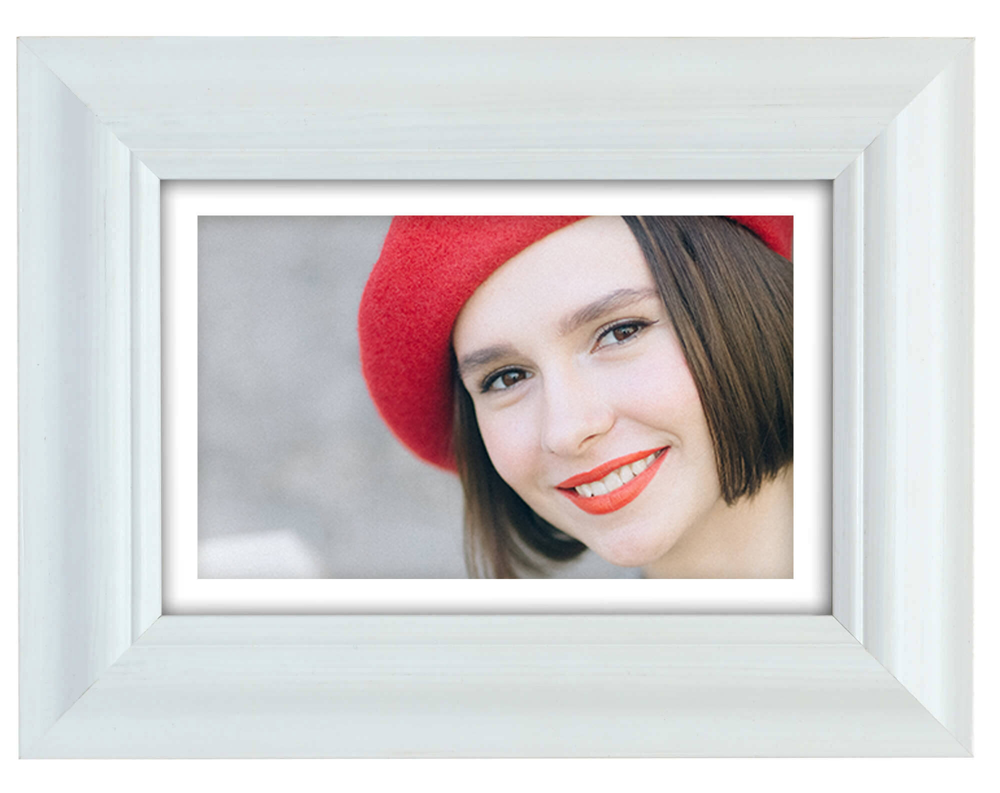 Klasyczna fotoramka w białym kolorze o przekroju profilu 31x16 mm wykonana w 100% z drewna. Przeznaczona jest do oprawy fotografii, plakatów i dyplomów. W zależności od formatu wyposażona jest w szkło mineralne lub bezbarwne szkło organiczne - wysokiej jakości plexi. Plecki wykonane są z twardej płyty HDF. Ramki na zdjęcia do rozmiaru 18x24 cm dodatkowo posiadają stopkę / nóżkę która pozwala eksponować oprawiony obraz na biurku lub regale. Ramka drewniana DRL N 1 dostępna jest w rozmiarach od 10x15 cm do 50x70 cm.
