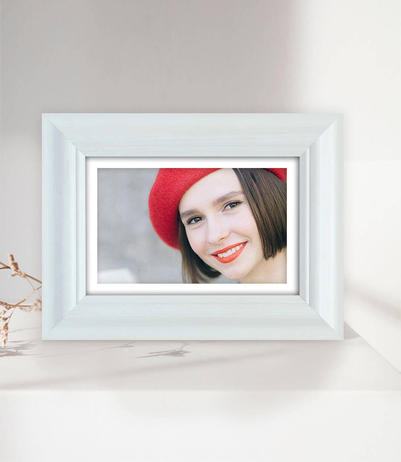 Klasyczna fotoramka w białym kolorze o przekroju profilu 31x16 mm wykonana w 100% z drewna. Przeznaczona jest do oprawy fotografii, plakatów i dyplomów. W zależności od formatu wyposażona jest w szkło mineralne lub bezbarwne szkło organiczne - wysokiej jakości plexi. Plecki wykonane są z twardej płyty HDF. Ramki na zdjęcia do rozmiaru 18x24 cm dodatkowo posiadają stopkę / nóżkę która pozwala eksponować oprawiony obraz na biurku lub regale. Ramka drewniana DRL N 1 dostępna jest w rozmiarach od 10x15 cm do 50x70 cm.