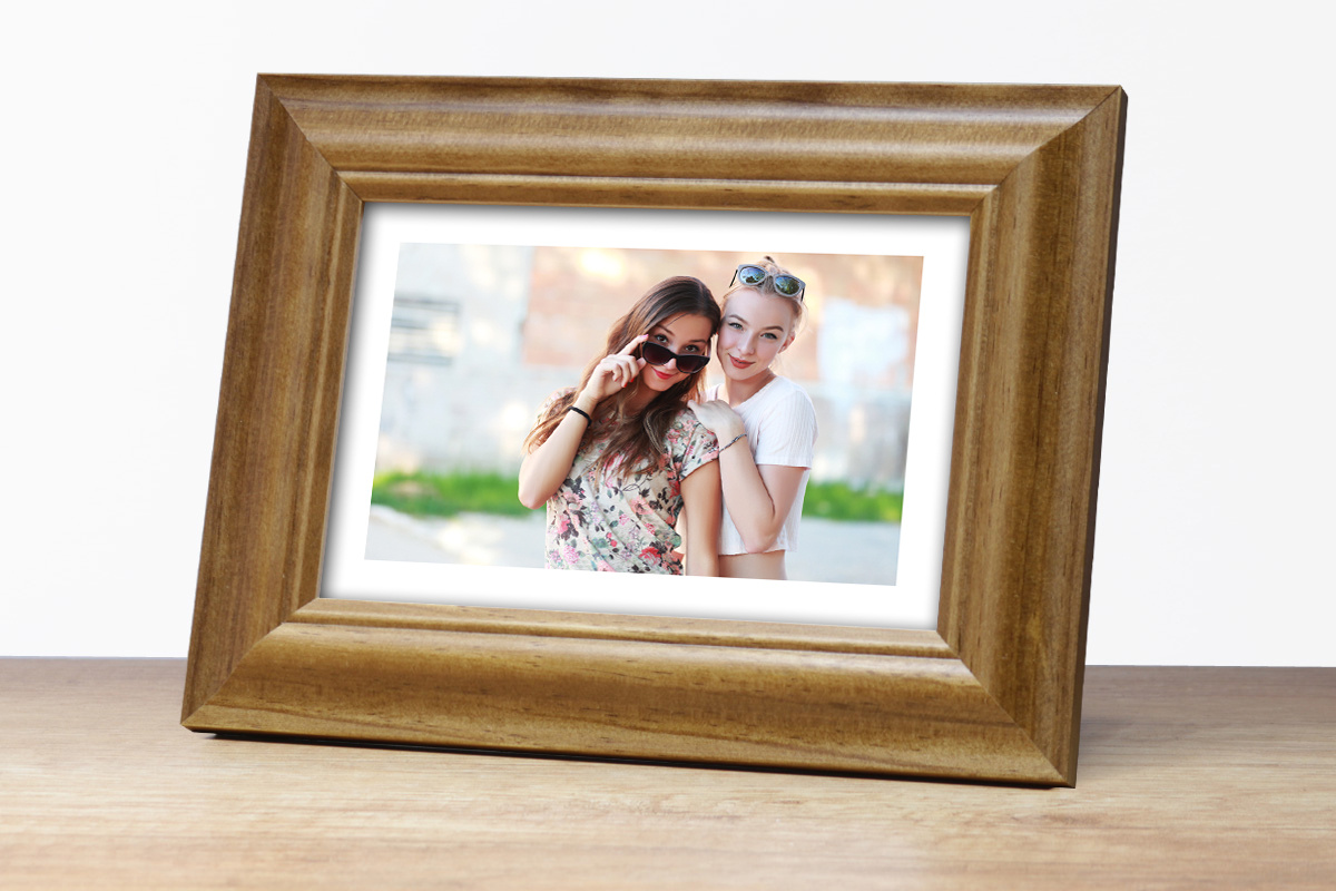 Klasyczna fotoramka w brązowym kolorze o przekroju profilu 31x16 mm wykonana w 100% z drewna. Przeznaczona jest do oprawy fotografii, plakatów i dyplomów. W zależności od formatu wyposażona jest w szkło mineralne lub bezbarwne szkło organiczne - wysokiej jakości plexi. Plecki wykonane są z twardej płyty HDF. Ramki na zdjęcia do rozmiaru 18x24 cm dodatkowo posiadają stopkę / nóżkę która pozwala eksponować oprawiony obraz na biurku lub regale. Ramka drewniana DRL N 33 dostępna jest w rozmiarach od 10x15 cm do 50x70 cm.