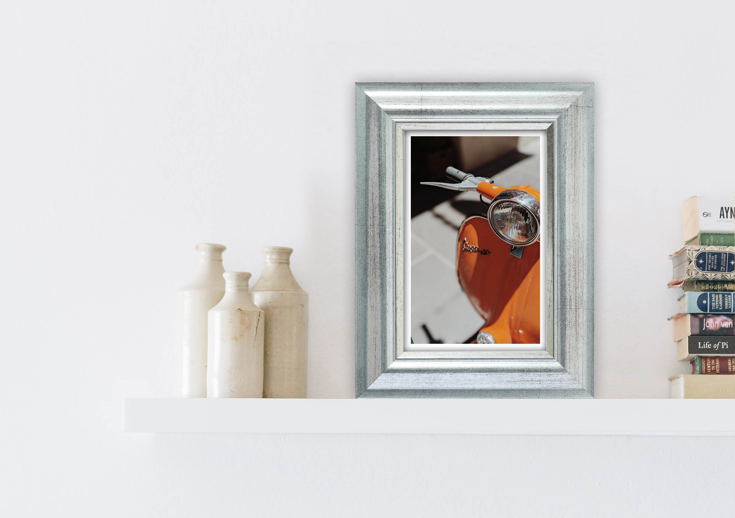 Klasyczna fotoramka w srebrnym kolorze o przekroju profilu 31x16 mm wykonana w 100% z drewna. Przeznaczona jest do oprawy fotografii, plakatów i dyplomów. W zależności od formatu wyposażona jest w szkło mineralne lub bezbarwne szkło organiczne - wysokiej jakości plexi. Plecki wykonane są z twardej płyty HDF. Ramki na zdjęcia do rozmiaru 18x24 cm dodatkowo posiadają stopkę / nóżkę która pozwala eksponować oprawiony obraz na biurku lub regale. Ramka drewniana DRL N S dostępna jest w rozmiarach od 10x15 cm do 50x70 cm.