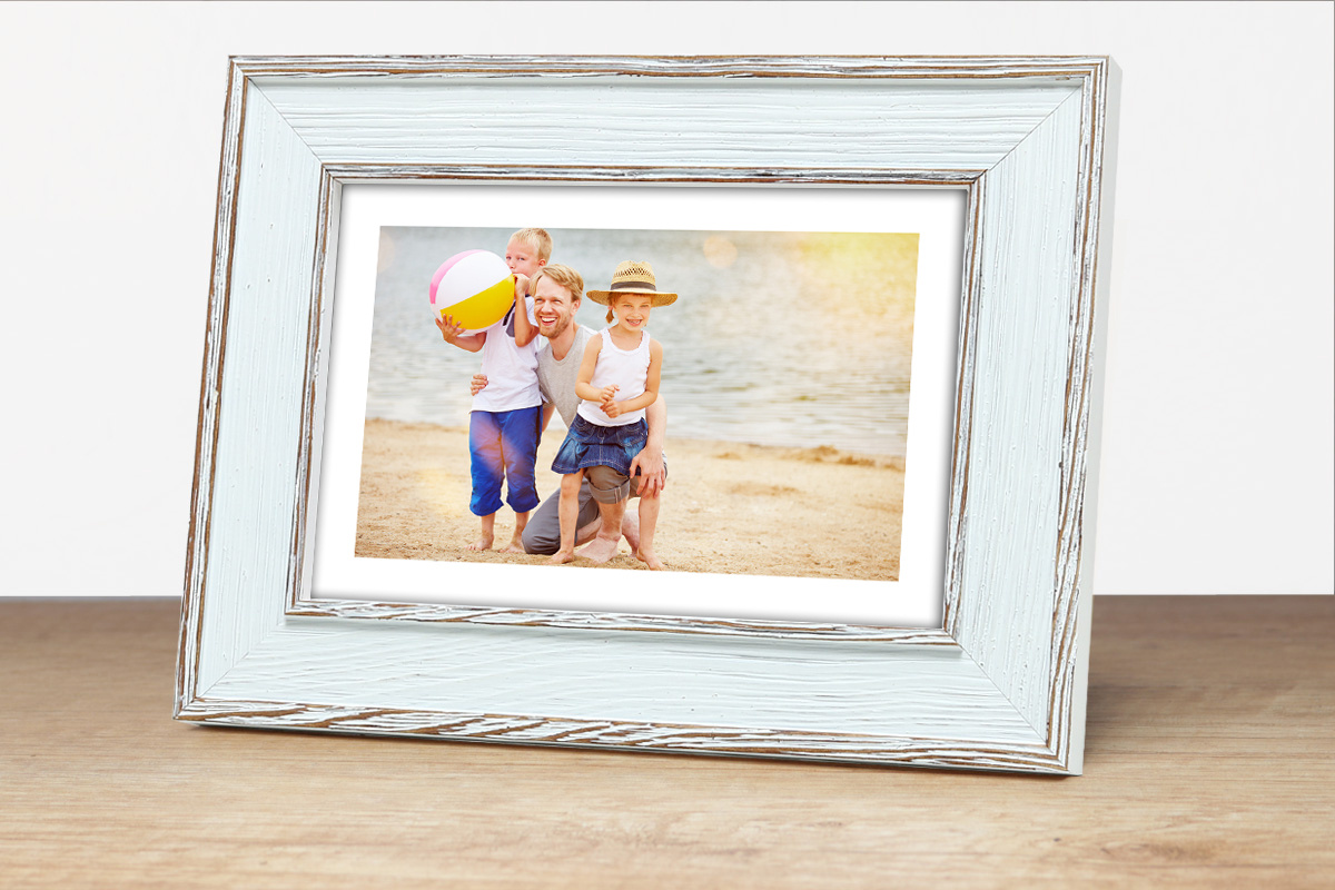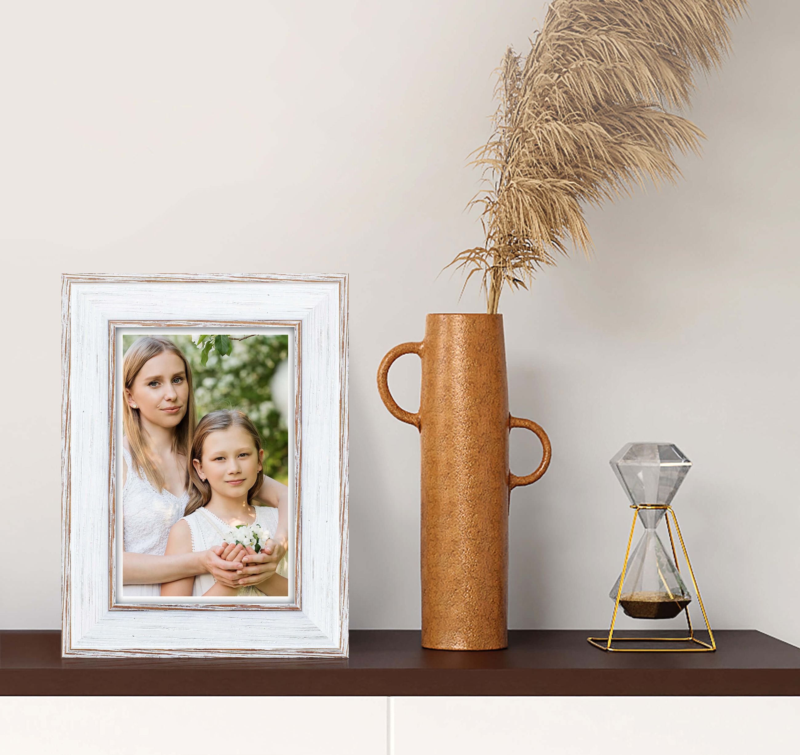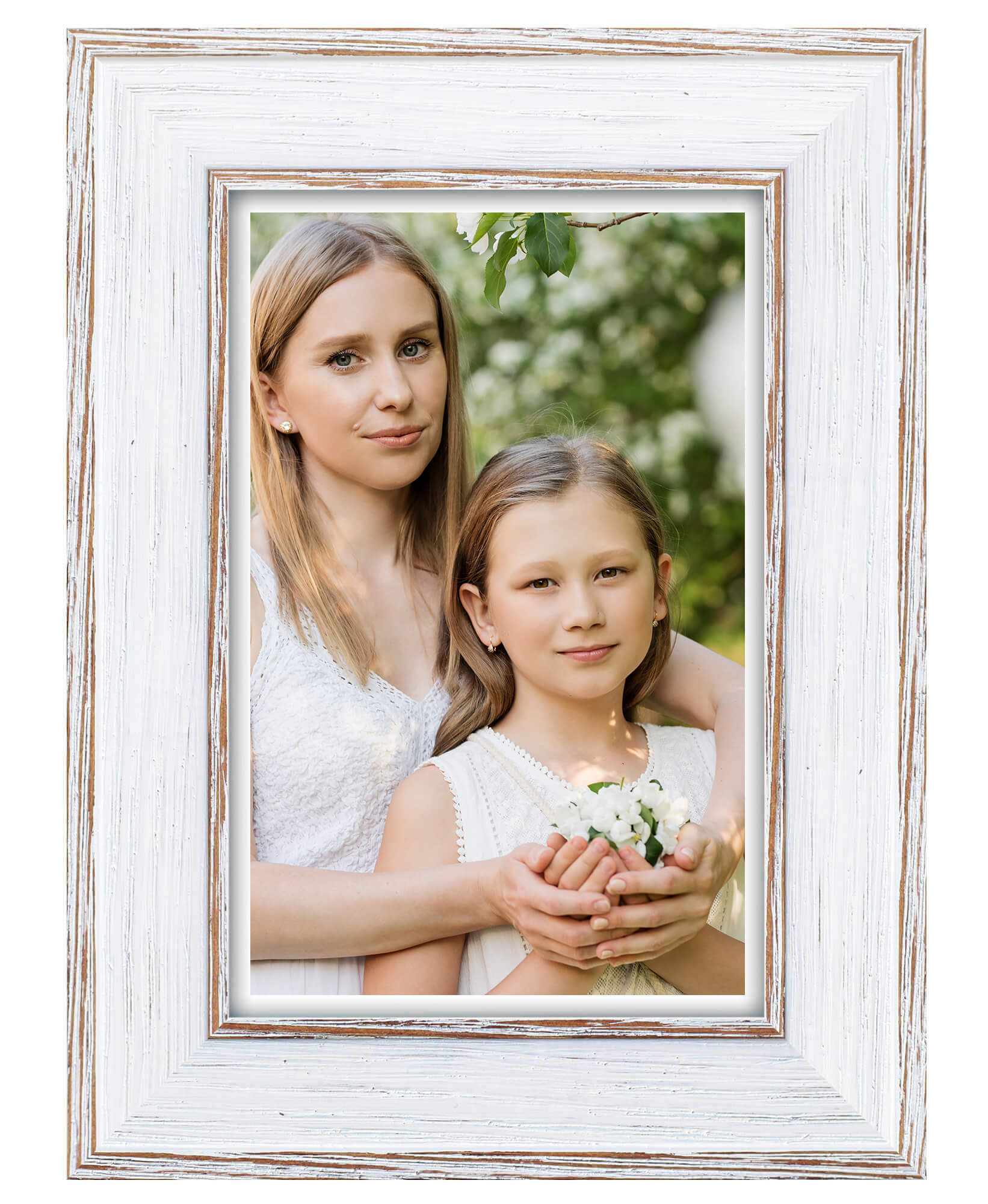 Nowoczesna fotoramka w białym kolorze z przetarciami o przekroju profilu 28x16 mm wykonana w 100% z drewna. Przeznaczona jest do oprawy fotografii, plakatów i dyplomów. W zależności od formatu wyposażona jest w szkło mineralne lub bezbarwne szkło organiczne - wysokiej jakości plexi. Plecki wykonane są z twardej płyty HDF. Ramki na zdjęcia do rozmiaru 18x24 cm dodatkowo posiadają stopkę / nóżkę która pozwala eksponować oprawiony obraz na biurku lub regale. Ramka drewniana DRL U 1 dostępna jest w rozmiarach od 10x15 cm do 50x70 cm.