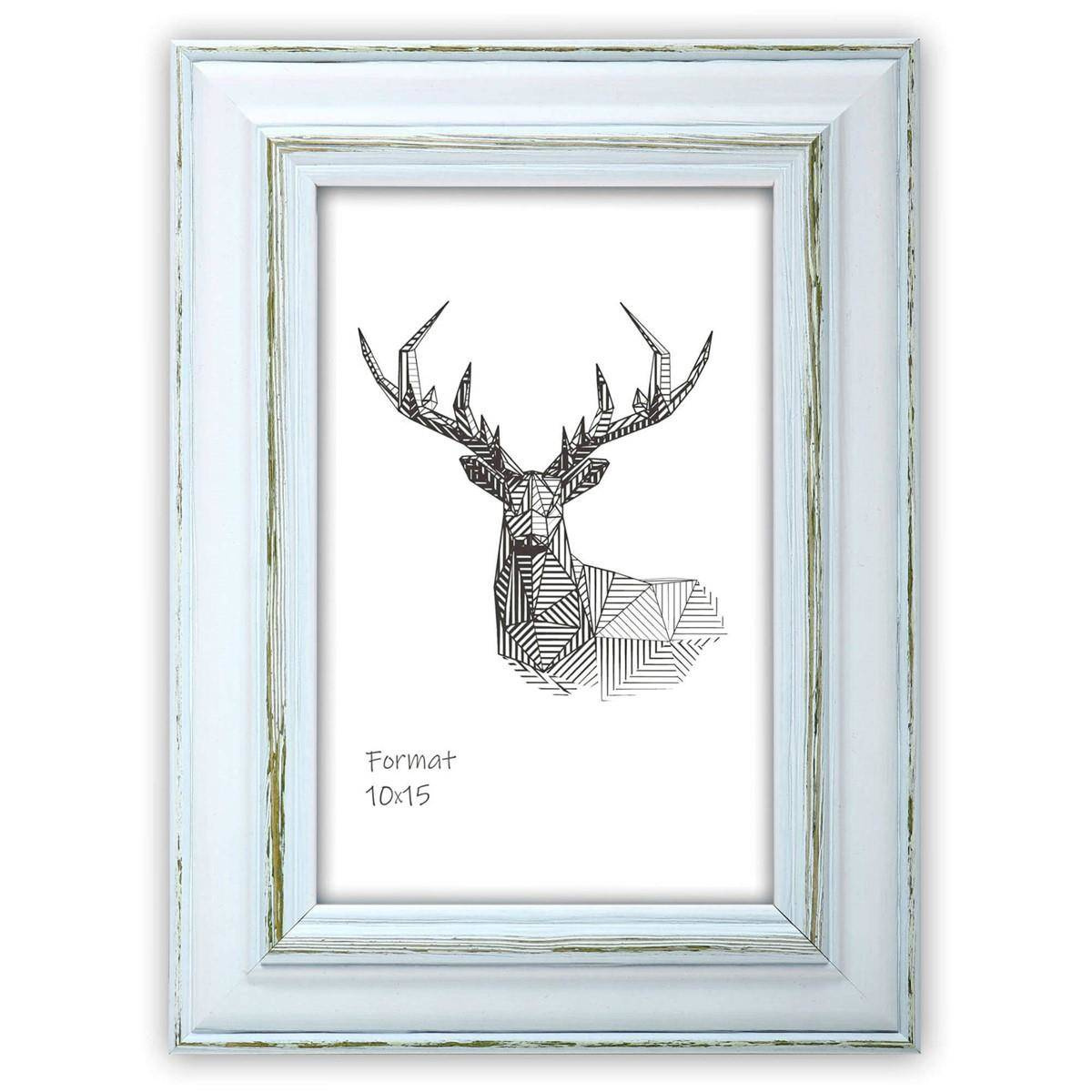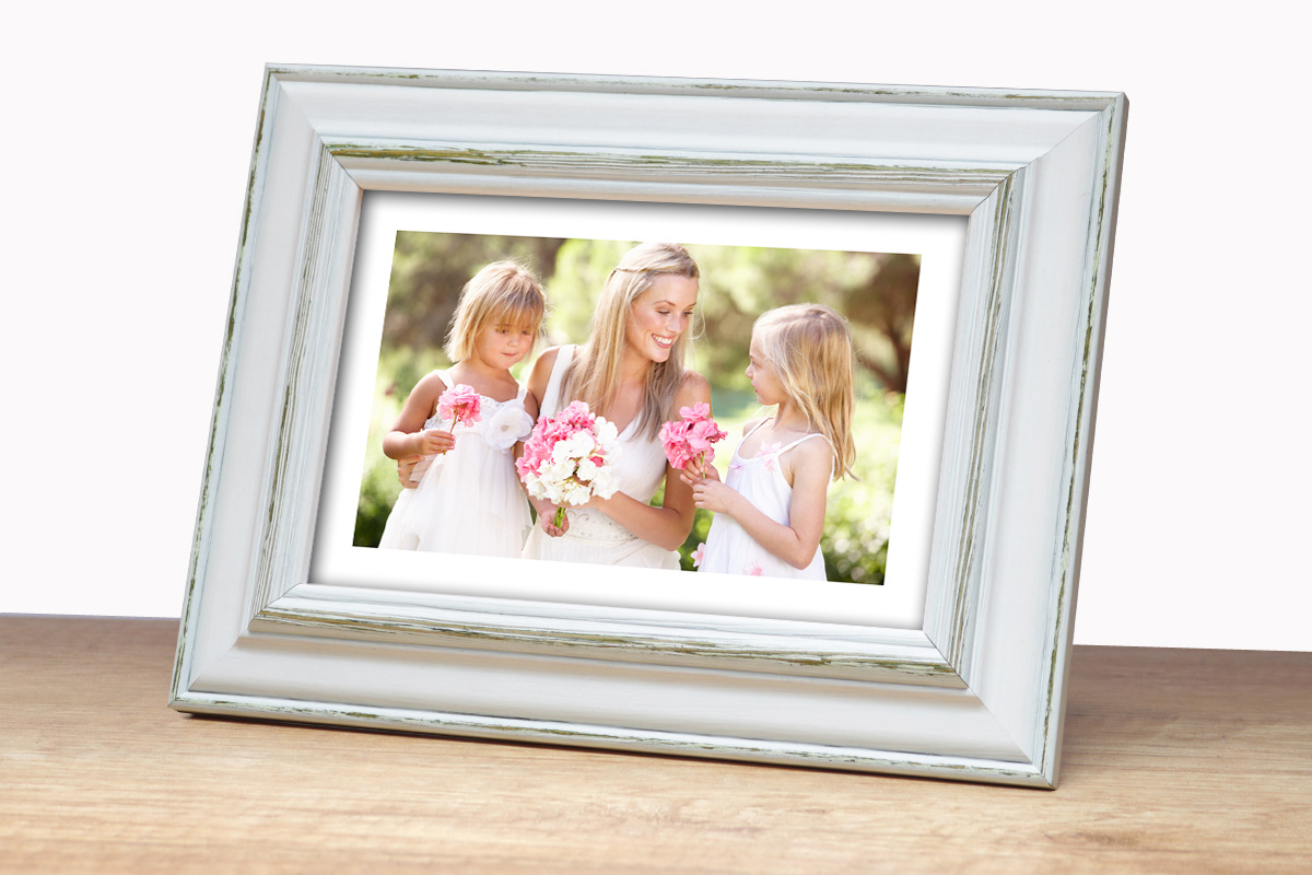 Rustykalna fotoramka w biało-zielonym kolorze z przetarciami o przekroju profilu 30x15 mm wykonana w 100% z drewna. Przeznaczona jest do oprawy fotografii, plakatów i dyplomów. W zależności od formatu wyposażona jest w szkło mineralne lub bezbarwne szkło organiczne - wysokiej jakości plexi. Plecki wykonane są z twardej płyty HDF. Ramki na zdjęcia do rozmiaru 18x24 cm dodatkowo posiadają stopkę / nóżkę która pozwala eksponować oprawiony obraz na biurku lub regale. Ramka drewniana DRL X 14 dostępna jest w rozmiarach od 10x15 cm do 50x70 cm.