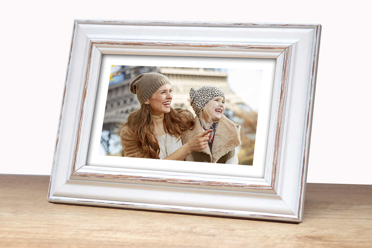 Rustykalna fotoramka w biało-brązowym kolorze z przetarciami o przekroju profilu 30x15 mm wykonana w 100% z drewna. Przeznaczona jest do oprawy fotografii, plakatów i dyplomów. W zależności od formatu wyposażona jest w szkło mineralne lub bezbarwne szkło organiczne - wysokiej jakości plexi. Plecki wykonane są z twardej płyty HDF. Ramki na zdjęcia do rozmiaru 18x24 cm dodatkowo posiadają stopkę / nóżkę która pozwala eksponować oprawiony obraz na biurku lub regale. Ramka drewniana DRL X 3 dostępna jest w rozmiarach od 10x15 cm do 50x70 cm.