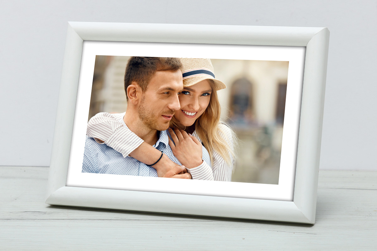 Nowoczesna fotoramka w białym kolorze o przekroju profilu 12x13 mm wykonana w 100% z drewna. Przeznaczona jest do oprawy fotografii, plakatów i dyplomów. W zależności od formatu wyposażona jest w szkło mineralne lub bezbarwne szkło organiczne - wysokiej jakości plexi. Plecki wykonane są z twardej płyty HDF. Ramki na zdjęcia do rozmiaru 18x24 cm dodatkowo posiadają stopkę / nóżkę która pozwala eksponować oprawiony obraz na biurku lub regale. Ramka drewniana DRWC F 1 dostępna jest w rozmiarach od 10x15 cm do 40x50 cm.