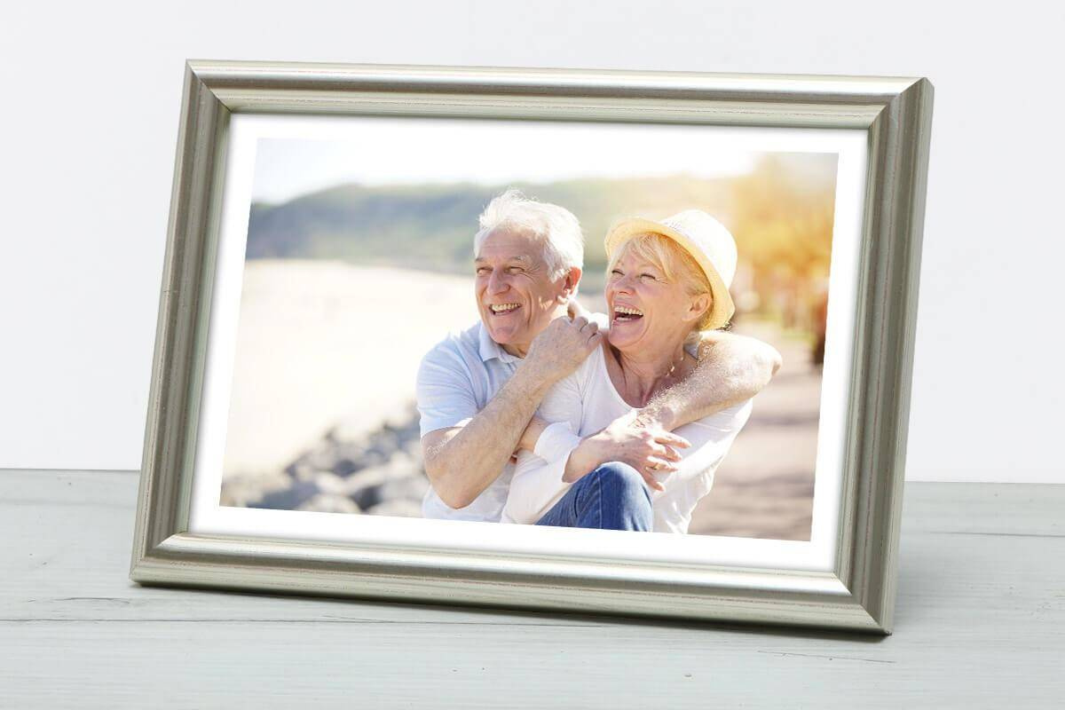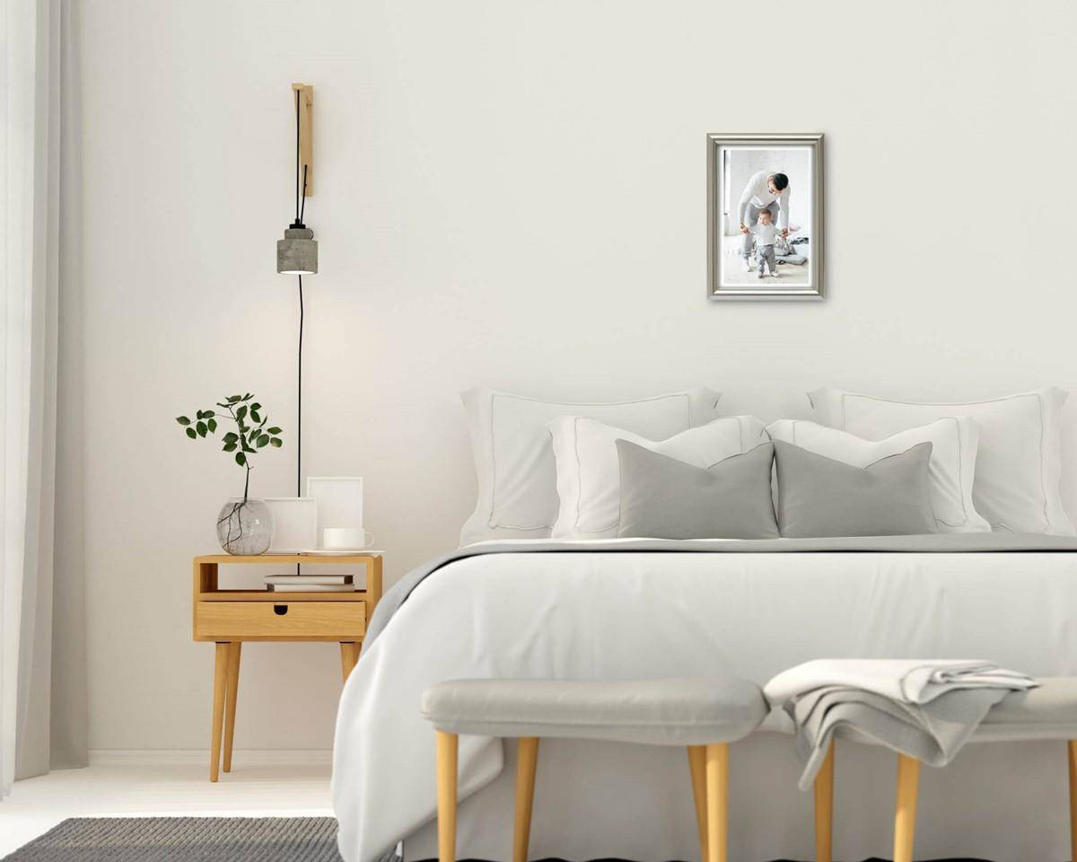 Nowoczesna fotoramka w srebrnym kolorze o przekroju profilu 12x13 mm wykonana w 100% z drewna. Przeznaczona jest do oprawy fotografii, plakatów i dyplomów. W zależności od formatu wyposażona jest w szkło mineralne lub bezbarwne szkło organiczne - wysokiej jakości plexi. Plecki wykonane są z twardej płyty HDF. Ramki na zdjęcia do rozmiaru 18x24 cm dodatkowo posiadają stopkę / nóżkę która pozwala eksponować oprawiony obraz na biurku lub regale. Ramka drewniana DRWC F S2 dostępna jest w rozmiarach od 10x15 cm do 40x50 cm.