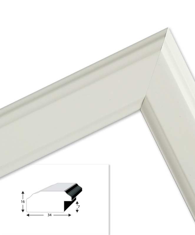 Klasyczna fotoramka w kremowym kolorze o przekroju profilu 34x16 mm wykonana w 100% z drewna. Przeznaczona jest do oprawy fotografii, plakatów i dyplomów. W zależności od formatu wyposażona jest w szkło mineralne lub bezbarwne szkło organiczne - wysokiej jakości plexi. Plecki wykonane są z twardej płyty HDF. Ramki na zdjęcia do rozmiaru 18x24 cm dodatkowo posiadają stopkę / nóżkę która pozwala eksponować oprawiony obraz na biurku lub regale. Ramka drewniana DRZ A 04 dostępna jest w rozmiarach od 10x15 cm do 50x70 cm.