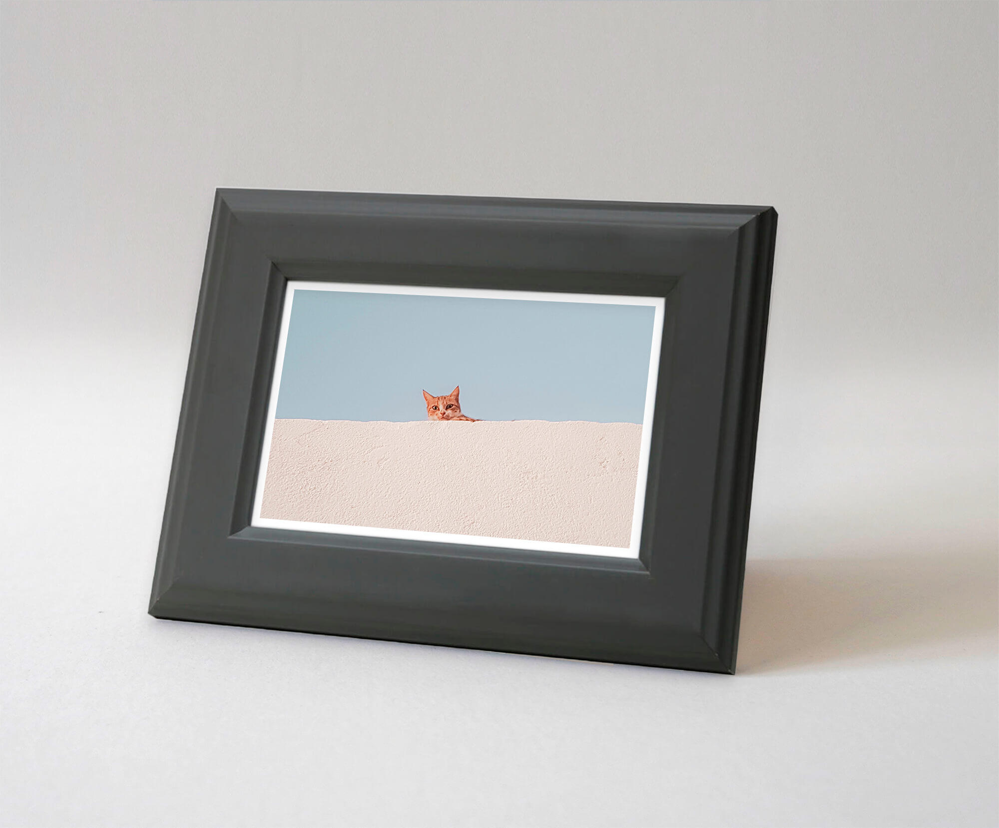 Nowoczesna fotoramka w ciemno-szarym kolorze o przekroju profilu 34x16 mm wykonana w 100% z drewna. Przeznaczona jest do oprawy fotografii, plakatów i dyplomów. W zależności od formatu wyposażona jest w szkło mineralne lub bezbarwne szkło organiczne - wysokiej jakości plexi. Plecki wykonane są z twardej płyty HDF. Ramki na zdjęcia do rozmiaru 18x24 cm dodatkowo posiadają stopkę / nóżkę która pozwala eksponować oprawiony obraz na biurku lub regale. Ramka drewniana DRZ A 06 dostępna jest w rozmiarach od 10x15 cm do 50x70 cm.
