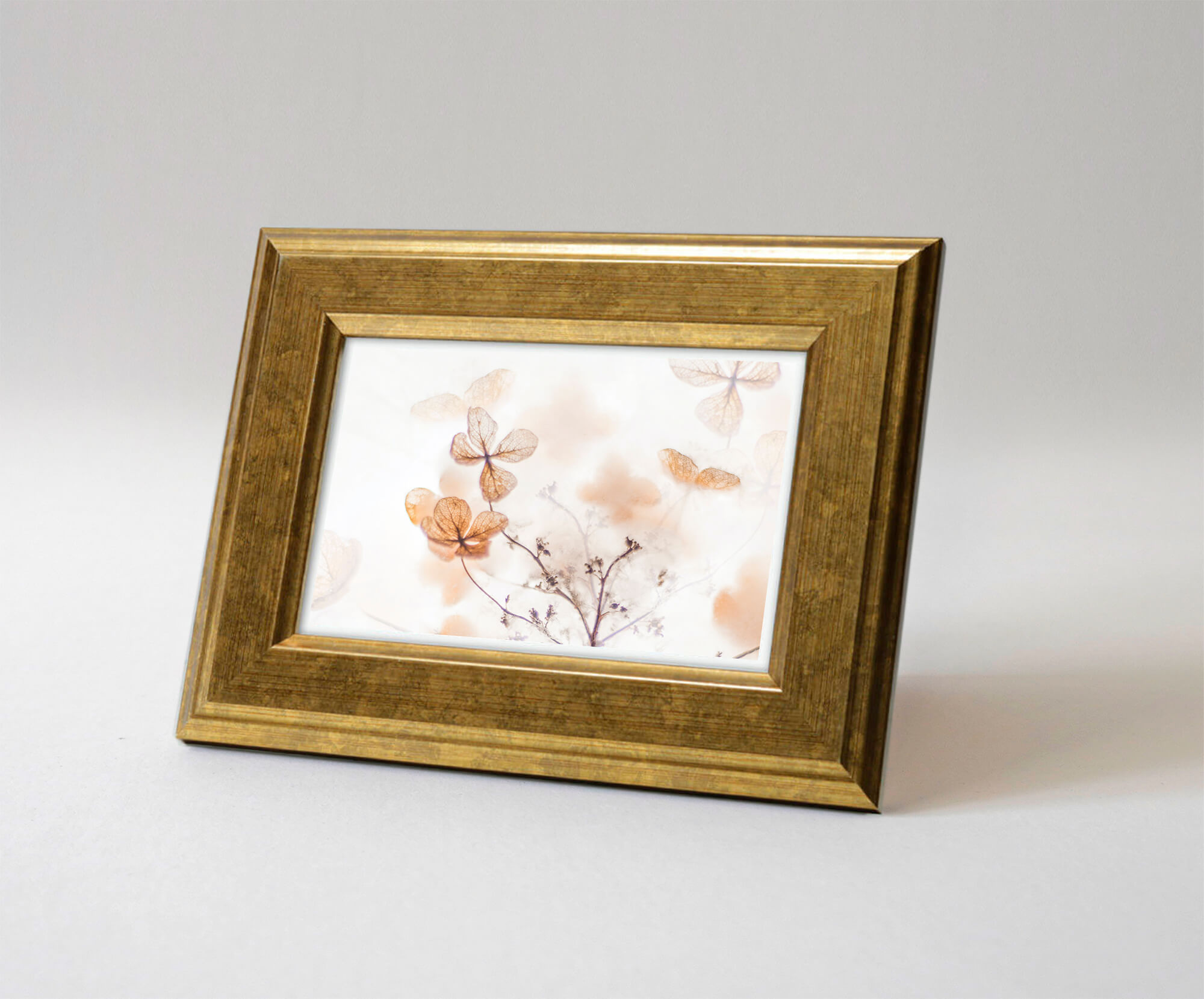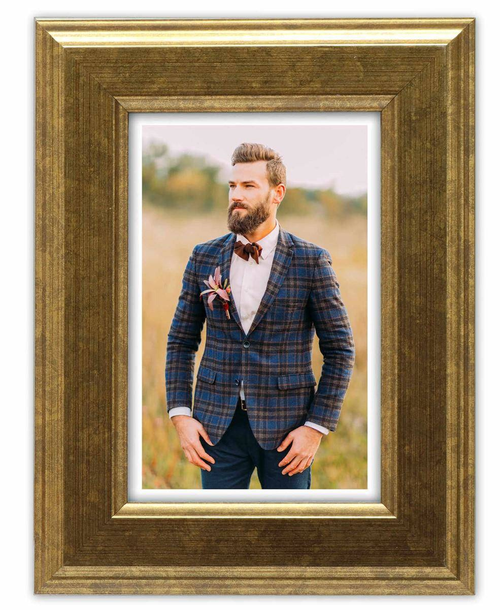 Nowoczesna fotoramka w kolorze antycznego złota o przekroju profilu 34x16 mm wykonana w 100% z drewna. Przeznaczona jest do oprawy fotografii, plakatów i dyplomów. W zależności od formatu wyposażona jest w szkło mineralne lub bezbarwne szkło organiczne - wysokiej jakości plexi. Plecki wykonane są z twardej płyty HDF. Ramki na zdjęcia do rozmiaru 18x24 cm dodatkowo posiadają stopkę / nóżkę która pozwala eksponować oprawiony obraz na biurku lub regale. Ramka drewniana DRZ A Z dostępna jest w rozmiarach od 10x15 cm do 50x70 cm.