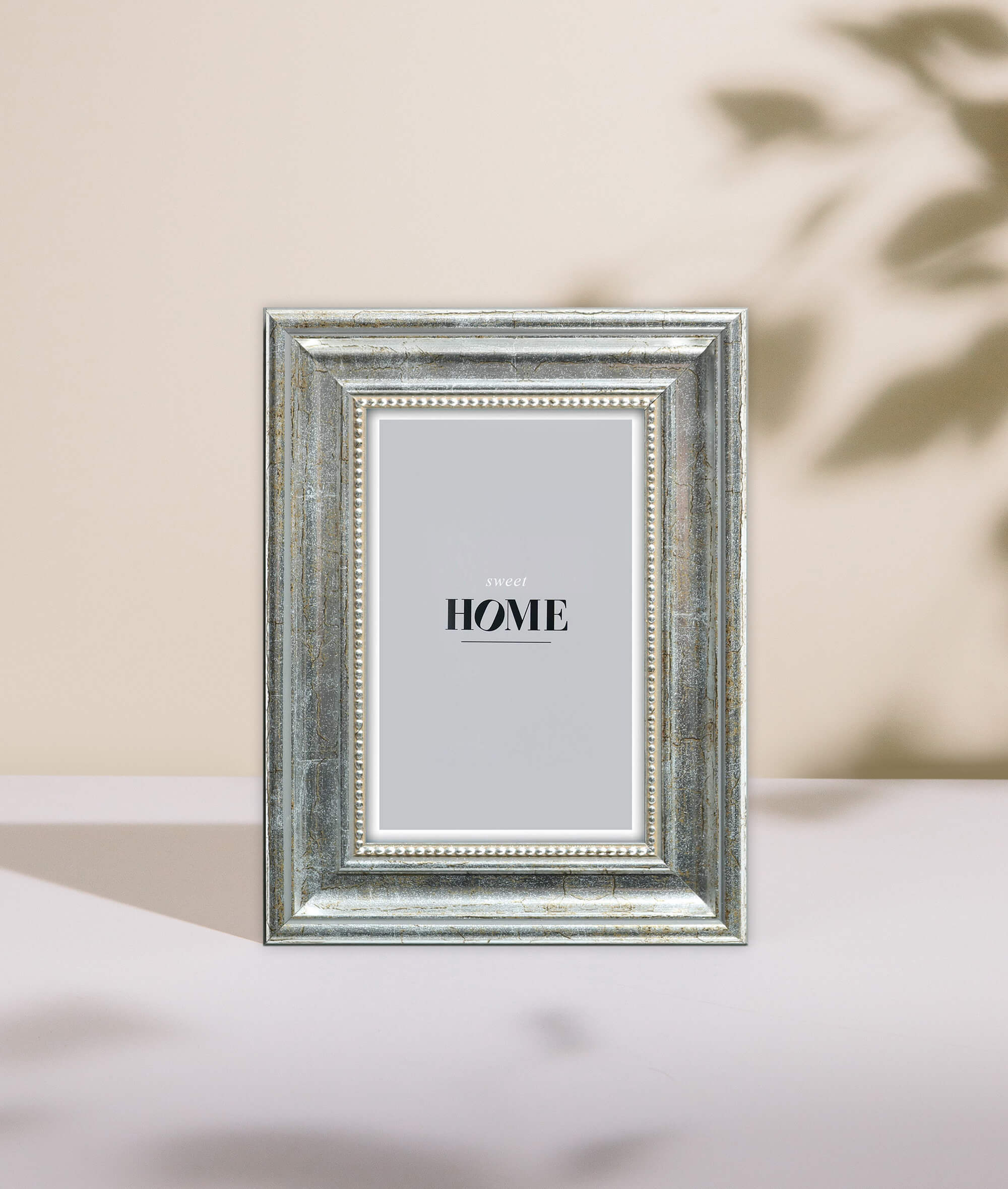 Klasyczna fotoramka w srebrnym spękanym kolorze o przekroju profilu 35x21 mm wykonana w 100% z drewna. Przeznaczona jest do oprawy fotografii, plakatów i dyplomów. W zależności od formatu wyposażona jest w szkło mineralne lub bezbarwne szkło organiczne - wysokiej jakości plexi. Plecki wykonane są z twardej płyty HDF. Ramki na zdjęcia do rozmiaru 18x24 cm dodatkowo posiadają stopkę / nóżkę która pozwala eksponować oprawiony obraz na biurku lub regale. Ramka drewniana DRZG M S dostępna jest w rozmiarach od 10x15 cm do 50x70 cm.