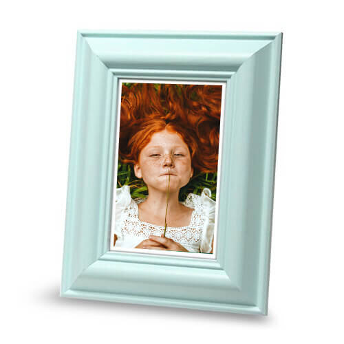 Nowoczesna fotoramka w miętowym kolorze o przekroju profilu 43x20 mm wykonana w 100% z drewna. Przeznaczona jest do oprawy fotografii, plakatów i dyplomów. W zależności od formatu wyposażona jest w szkło mineralne lub bezbarwne szkło organiczne - wysokiej jakości plexi. Plecki wykonane są z twardej płyty HDF. Ramki na zdjęcia do rozmiaru 18x24 cm dodatkowo posiadają stopkę / nóżkę która pozwala eksponować oprawiony obraz na biurku lub regale. Ramka drewniana DRZG Z 15 dostępna jest w rozmiarach od 10x15 cm do 50x70 cm.