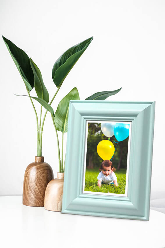 Nowoczesna fotoramka w miętowym kolorze o przekroju profilu 43x20 mm wykonana w 100% z drewna. Przeznaczona jest do oprawy fotografii, plakatów i dyplomów. W zależności od formatu wyposażona jest w szkło mineralne lub bezbarwne szkło organiczne - wysokiej jakości plexi. Plecki wykonane są z twardej płyty HDF. Ramki na zdjęcia do rozmiaru 18x24 cm dodatkowo posiadają stopkę / nóżkę która pozwala eksponować oprawiony obraz na biurku lub regale. Ramka drewniana DRZG Z 15 dostępna jest w rozmiarach od 10x15 cm do 50x70 cm.