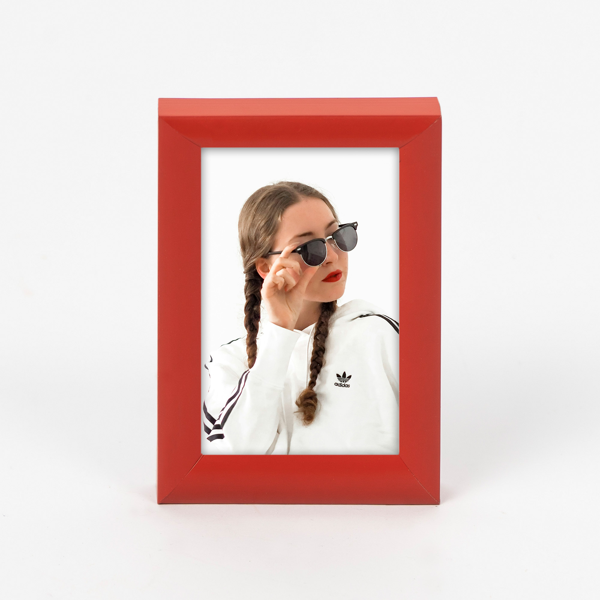 Nowoczesna fotoramka w czerwonym kolorze o przekroju profilu 12x11 mm wykonana w 100% z drewna. Przeznaczona jest do oprawy fotografii, plakatów i dyplomów. W zależności od formatu wyposażona jest w szkło mineralne lub bezbarwne szkło organiczne - wysokiej jakości plexi. Plecki wykonane są z twardej płyty HDF. Ramki na zdjęcia do rozmiaru 18x24 cm dodatkowo posiadają stopkę / nóżkę która pozwala eksponować oprawiony obraz na biurku lub regale. Ramka drewniana EKO 5 dostępna jest w rozmiarach od 10x15 cm do 40x50 cm.
