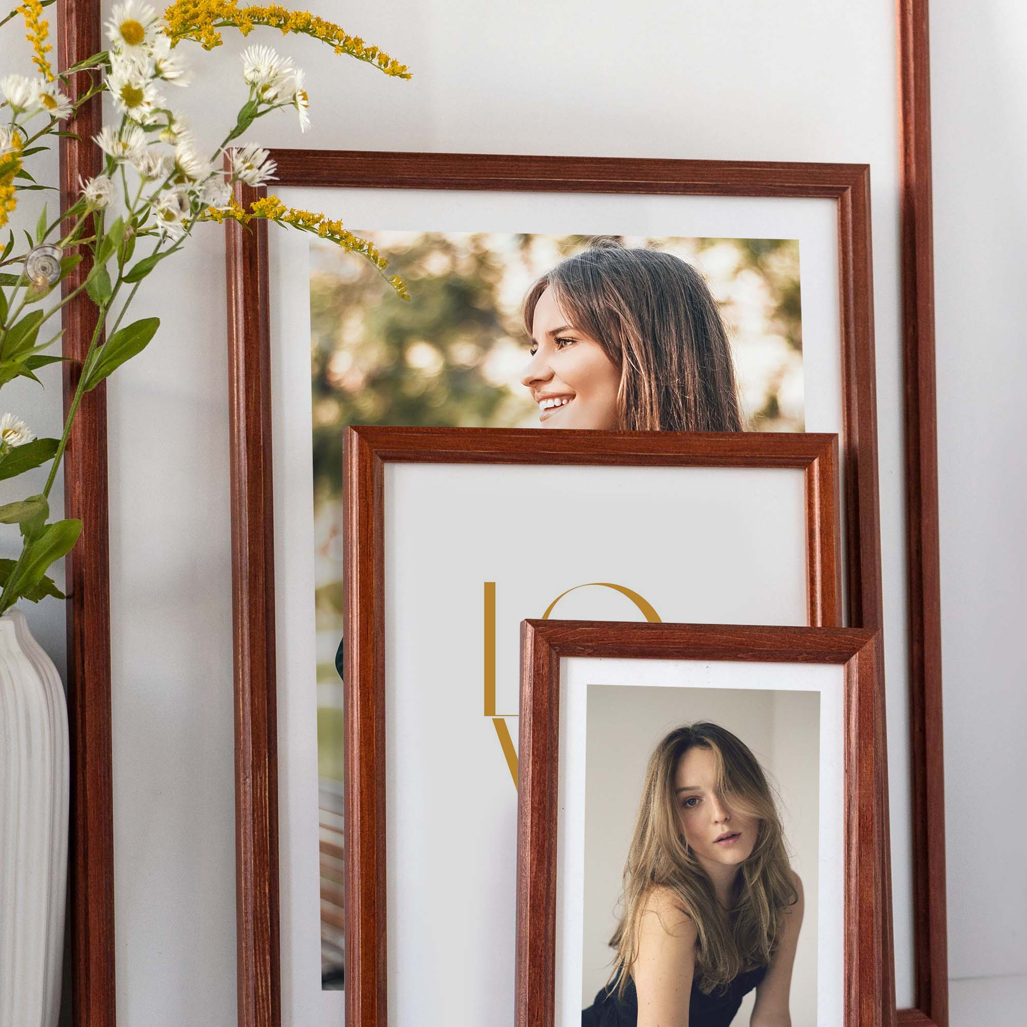 Ramki na zdjęcia z serii DRWA 5 w kolorze mahoniowym to nowoczesny styl z nutką klasyki. W sposób unikalny i stylowy oprawi zdjęcie, dyplom, jak i dowolne grafiki. Efekt delikatnego profilu w połączeniu z jasną barwą drewna pozwoli wyeksponować oprawiony przedmiot w sposób zdumiewający. Modna stylistyka z delikatnie zaznaczoną ramą o szerokości 13 mm i wysokości 11 mm będzie przykuwać uwagę i zainteresuje każdego na oprawione zdjęcie lub grafikę.
