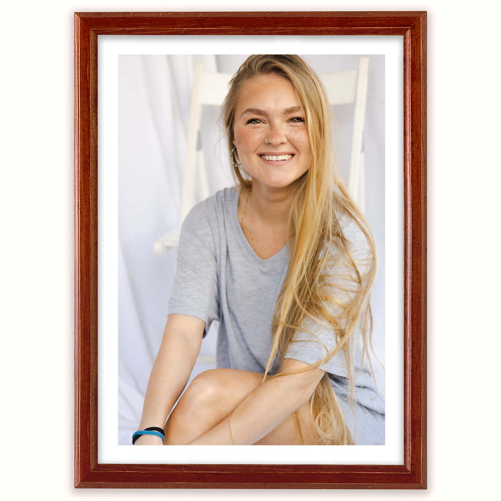 Ramki na zdjęcia z serii DRWA 5 w kolorze mahoniowym to nowoczesny styl z nutką klasyki. W sposób unikalny i stylowy oprawi zdjęcie, dyplom, jak i dowolne grafiki. Efekt delikatnego profilu w połączeniu z jasną barwą drewna pozwoli wyeksponować oprawiony przedmiot w sposób zdumiewający. Modna stylistyka z delikatnie zaznaczoną ramą o szerokości 13 mm i wysokości 11 mm będzie przykuwać uwagę i zainteresuje każdego na oprawione zdjęcie lub grafikę.