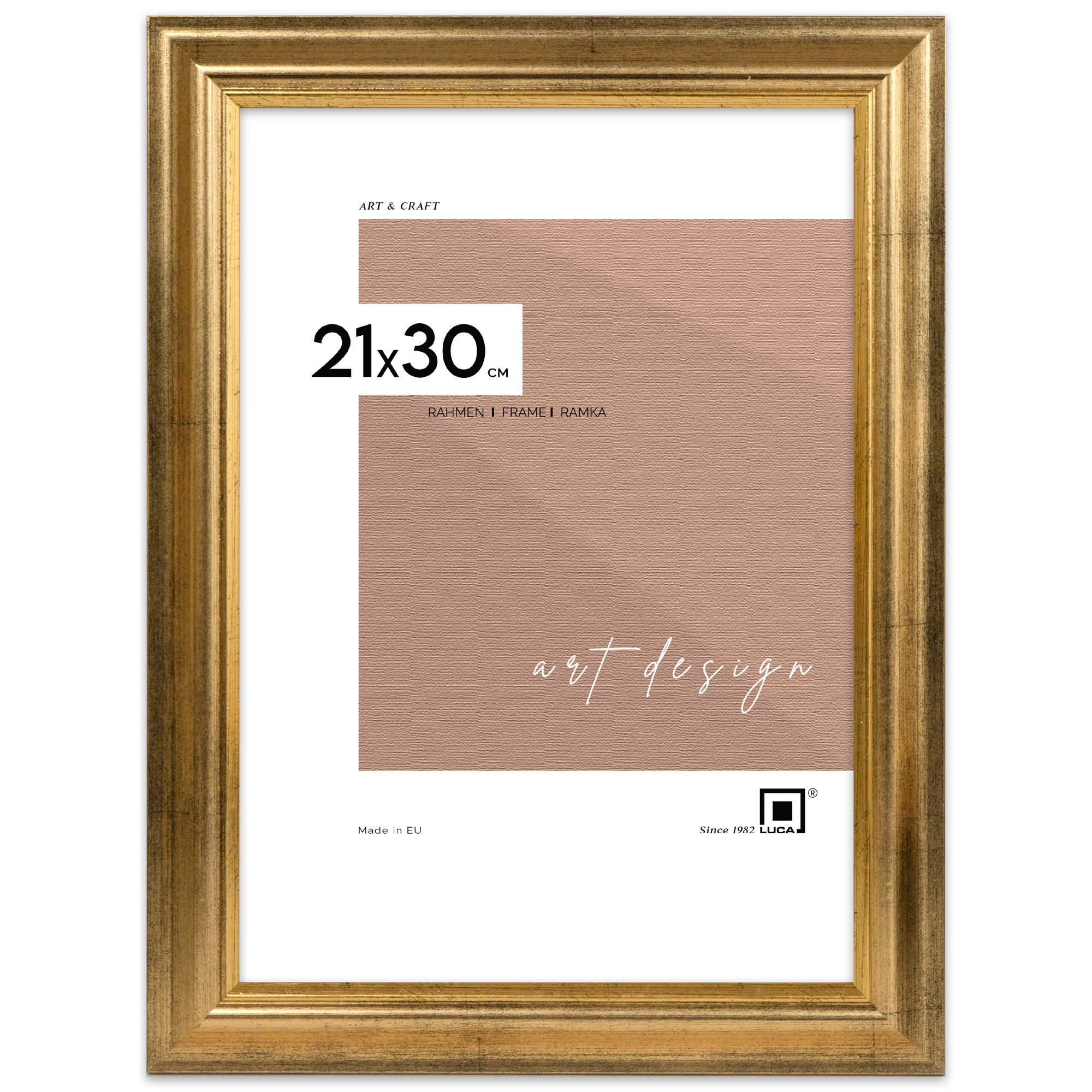 Ramka drewniana w kolorze złotym DRL N Z o rozmiarze 21x30 cm