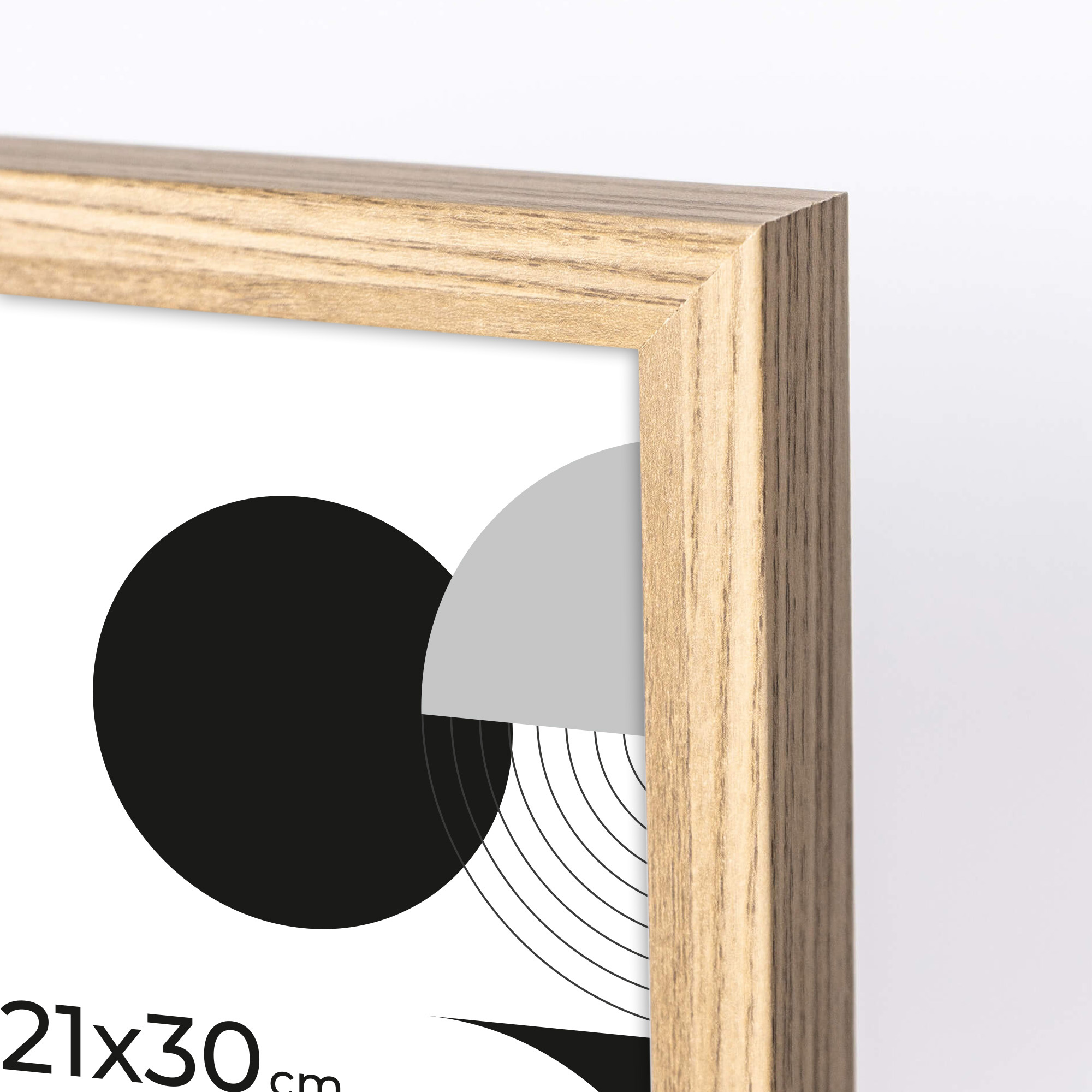 Ramka precyzyjnie wykonana w kolorze dębowym. Modna stylistyka i delikatna rama o szerokości 13 mm i wysokości 20 mm przykuje uwagę i pozwoli zaakcentować oprawione zdjęcie, plakat lub dyplom.