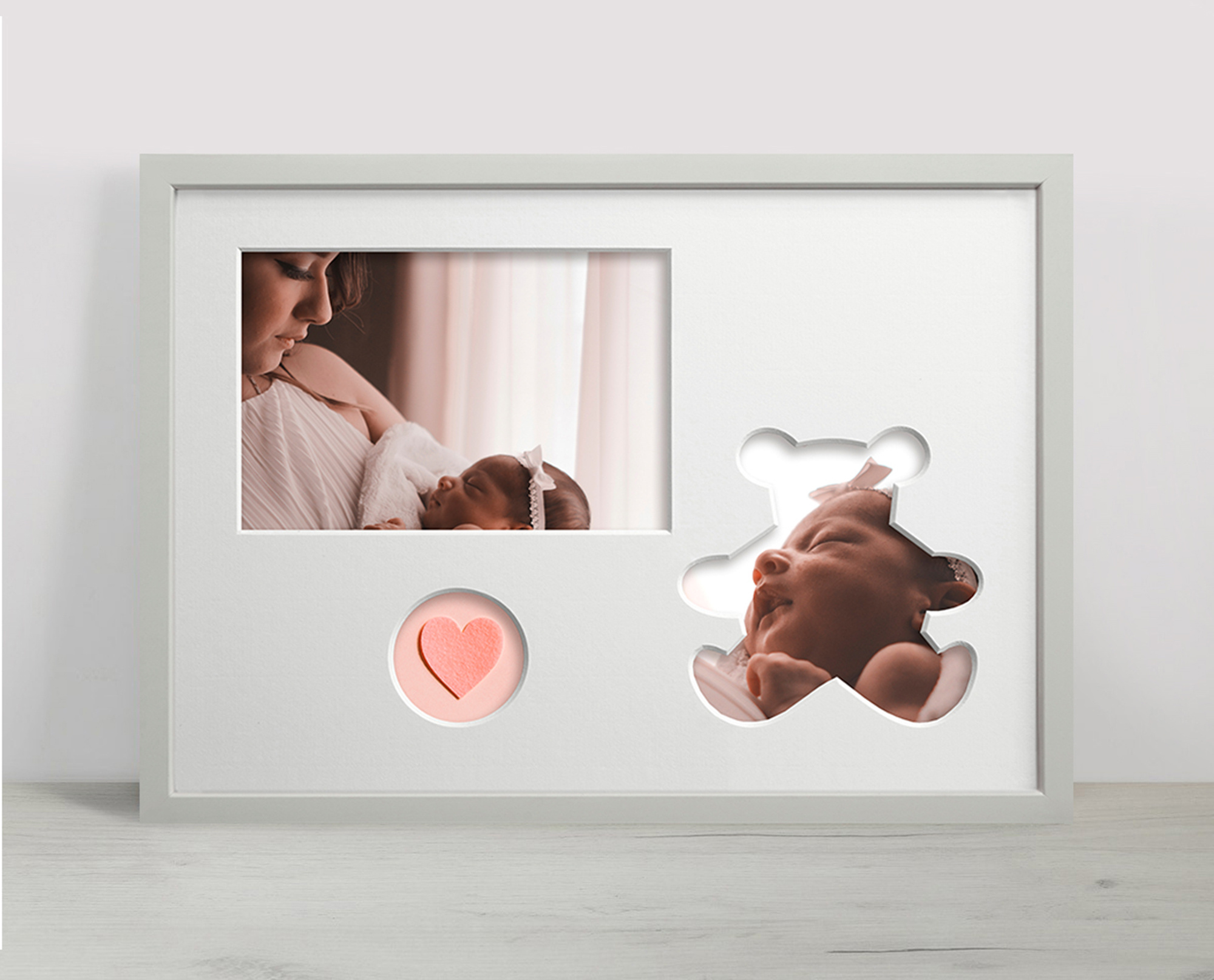 Dołączone do ramki passe partout pozwala na wykonanie kolażu 3 zdjęć o rozmiarze 10x10 cm, 10x15 cm i 5x5 cm. Wystarczy wywołać kilka fotografii i umieścić je w ramce, aby stworzyć niebanalną kompozycję.