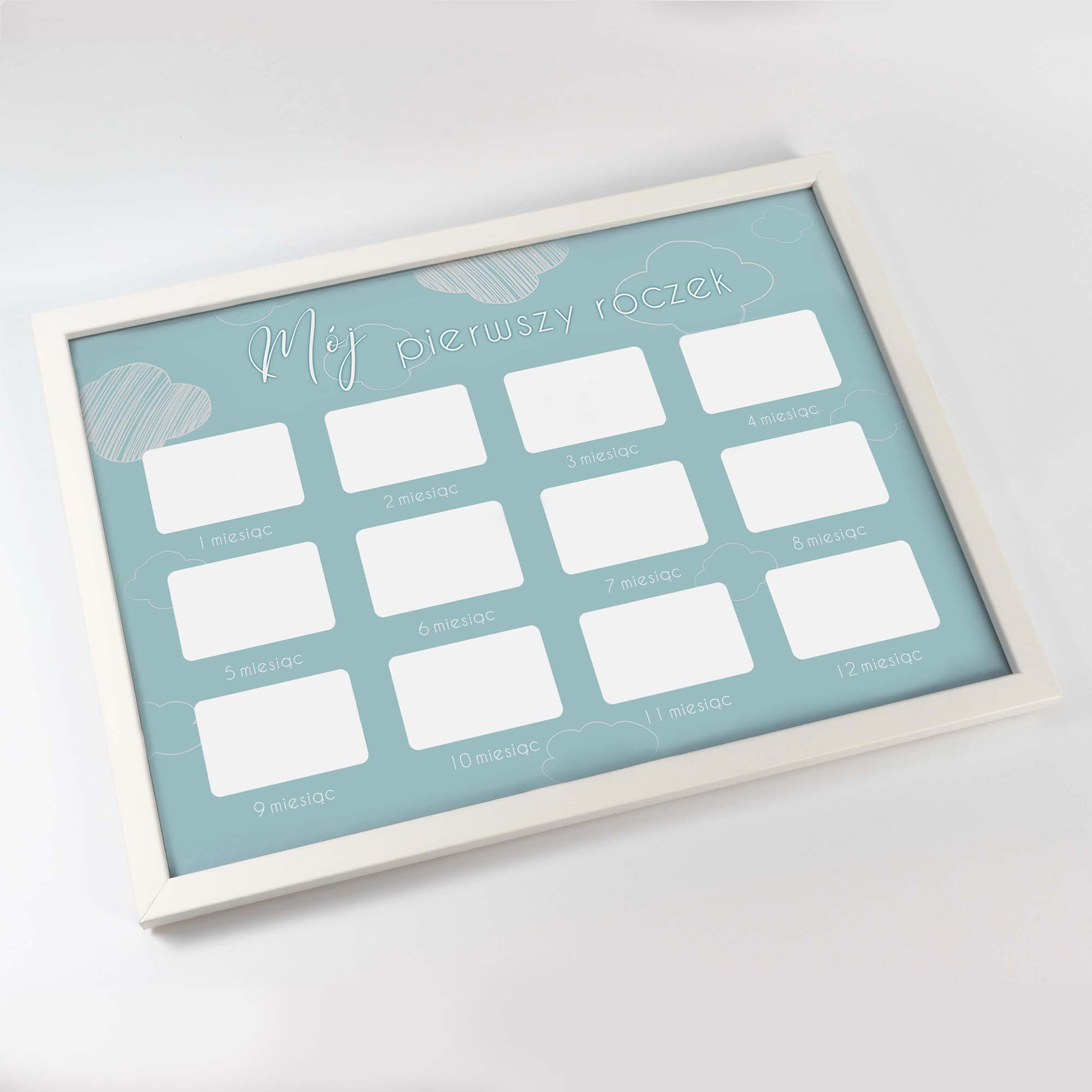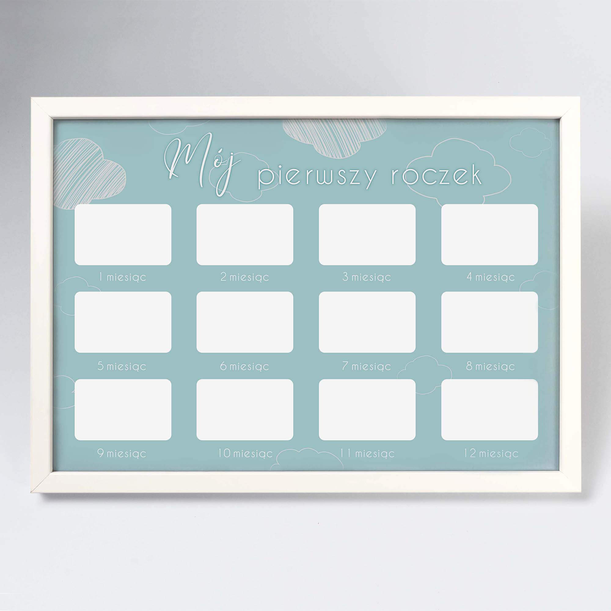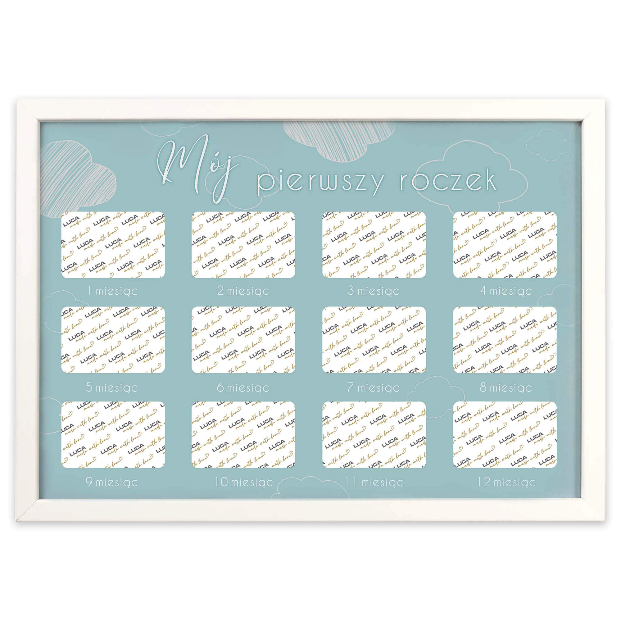 Ramka drewniana do pokoju dziecięcego o rozmiarze 21x30 cm. Multirama kalendarz MójPierwszy Roczek.